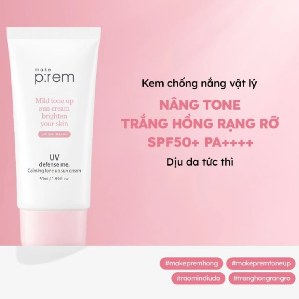 Kem Chống Nắng Vật Lý Nâng Tông Da Make P:rem UV Defense Me Calming Tone Up Sun Cream SPF50+ PA++++