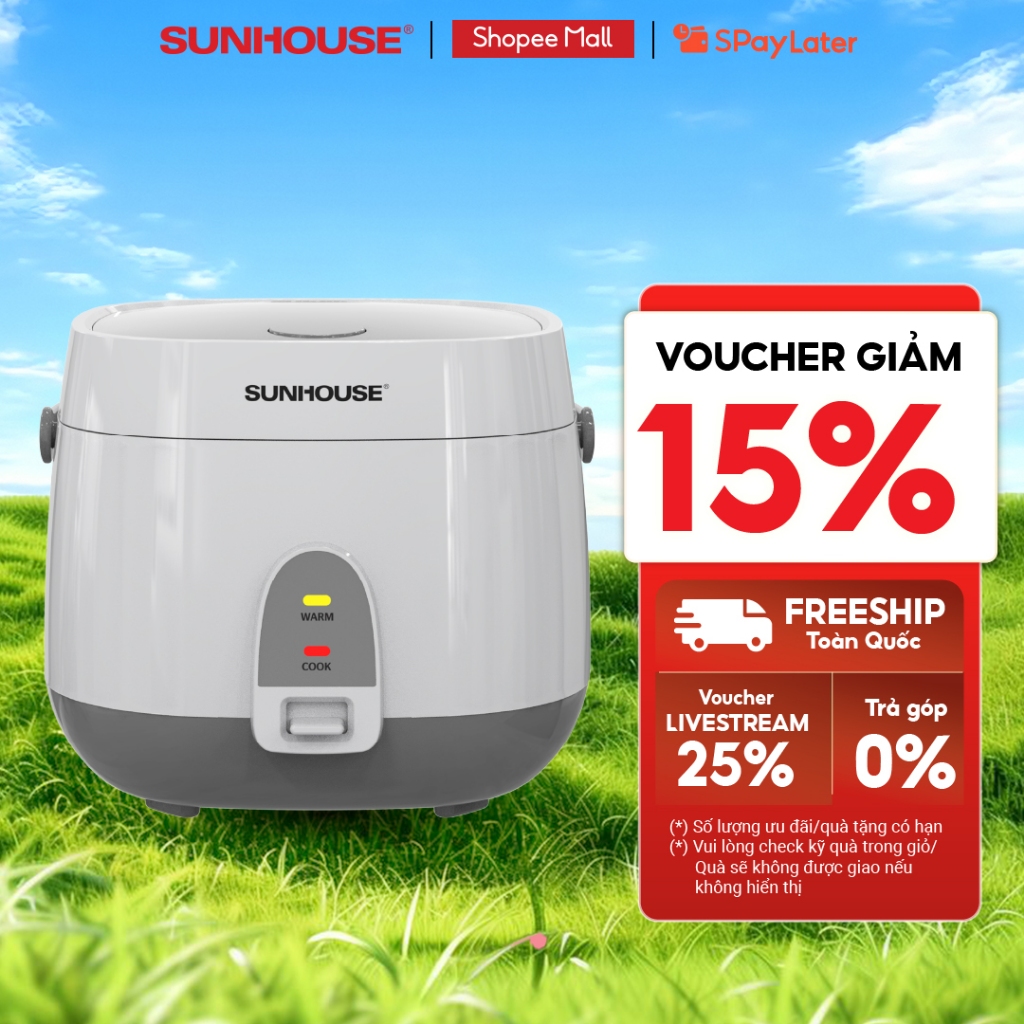 Nồi cơm điện 1.8L Sunhouse SHD8611- Lòng nồi: 1mm, chống dính 2 lớp vân đá, 4-6 người dùng - Sản xuất tại Việt Nam