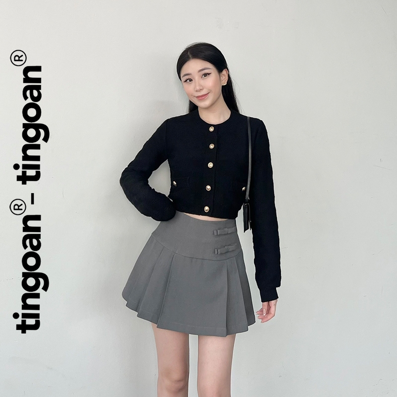 [ KOL ] TINGOAN® Áo len xù cardigan cổ tròn vân quả trám nổi dài tay RACHEL TOP