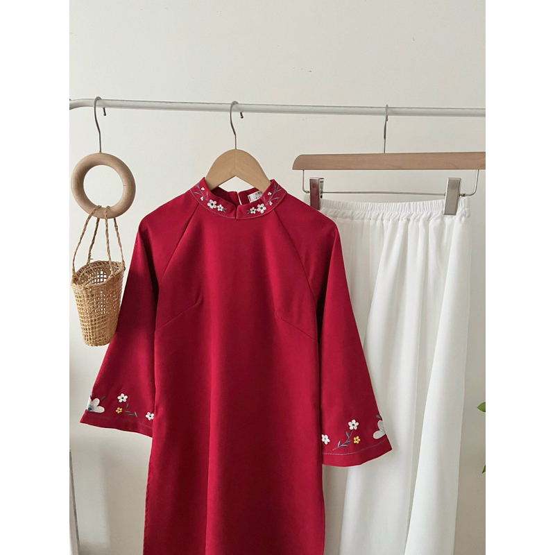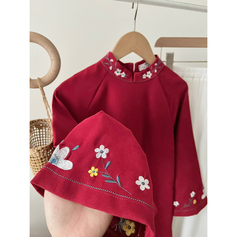 Set áo dài nhung hoa thêu Forgirl tặng kèm chân váy voan xoè dài T026