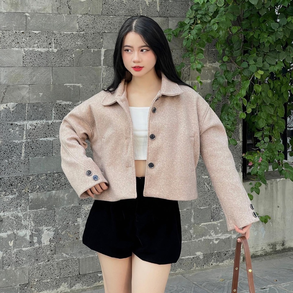 Áo khoác dạ tiêu Forgirl áo dạ nữ chất liệu dạ ép dáng croptop cổ bẻ T024