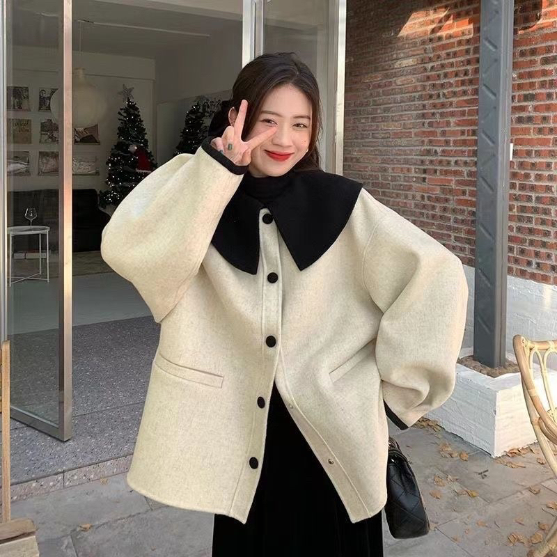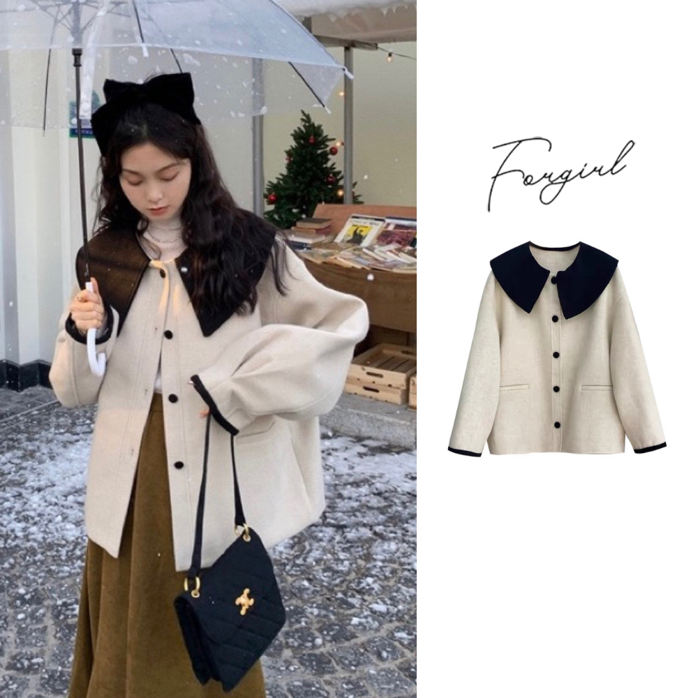Áo khoác dạ Forgirl áo dạ nữ dáng rộng phối cổ vạt nhọn phong cách tiểu thư T040