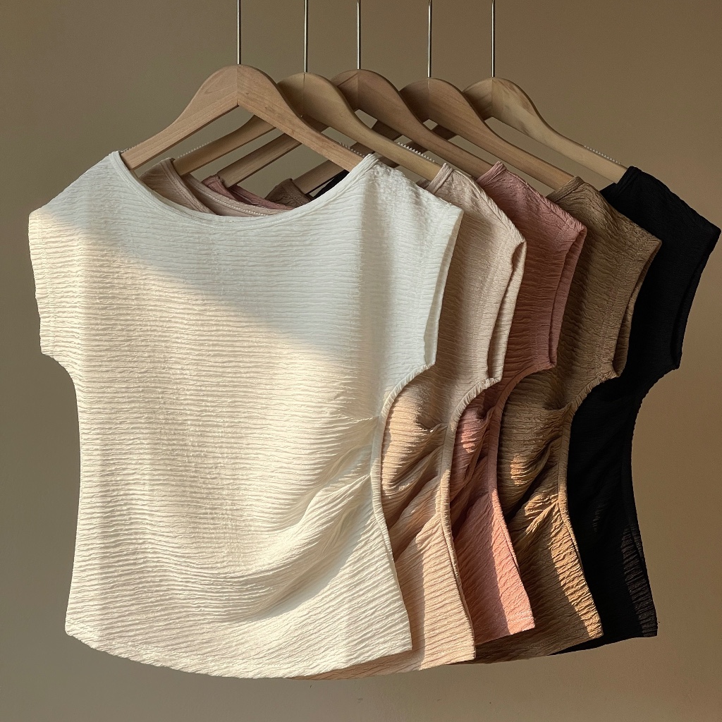 Áo thun lệch vai tay ngắn Forgirl áo phông dáng vừa chất liệu xốp nhăn T006