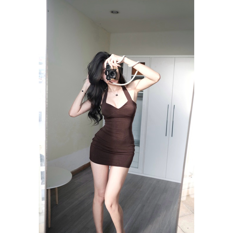 Đầm body cổ yếm phối chấm bi cột dây ôm dáng slay 119.items