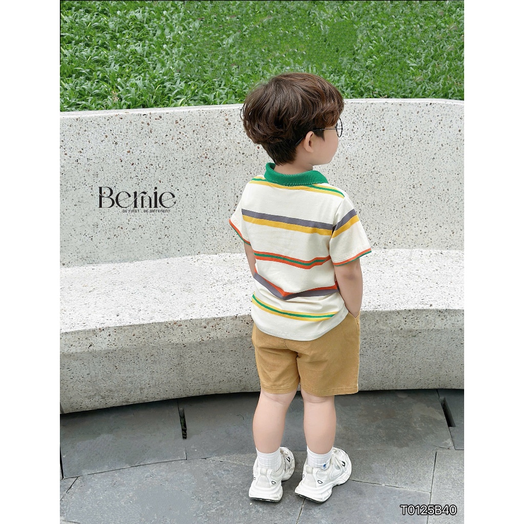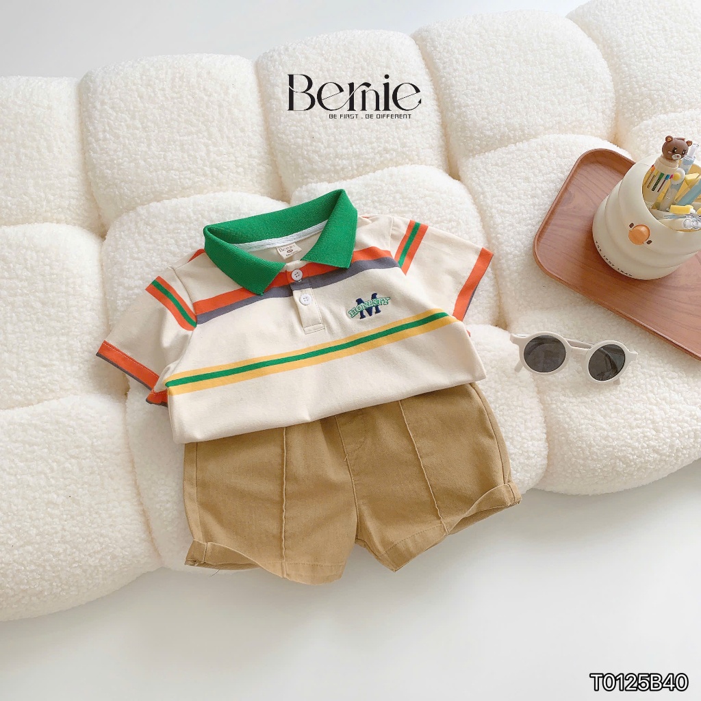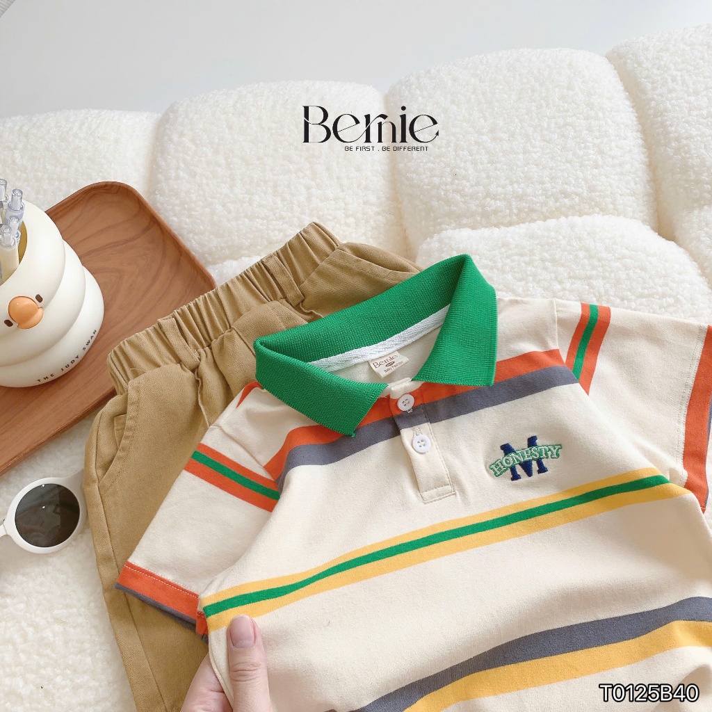 Bộ polo cộc tay bé trai Honesty kẻ màu nổi bật Bernie - Bộ bé trai mùa hè 9-24kg - T0125B40