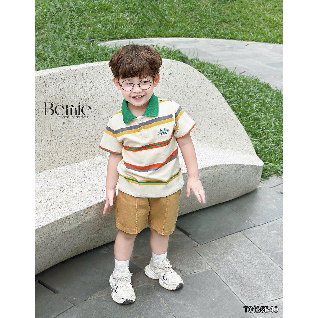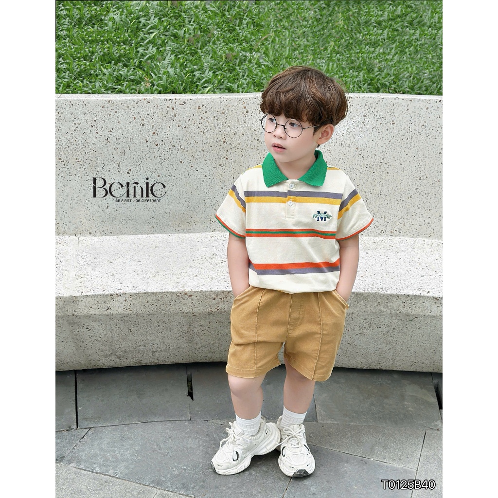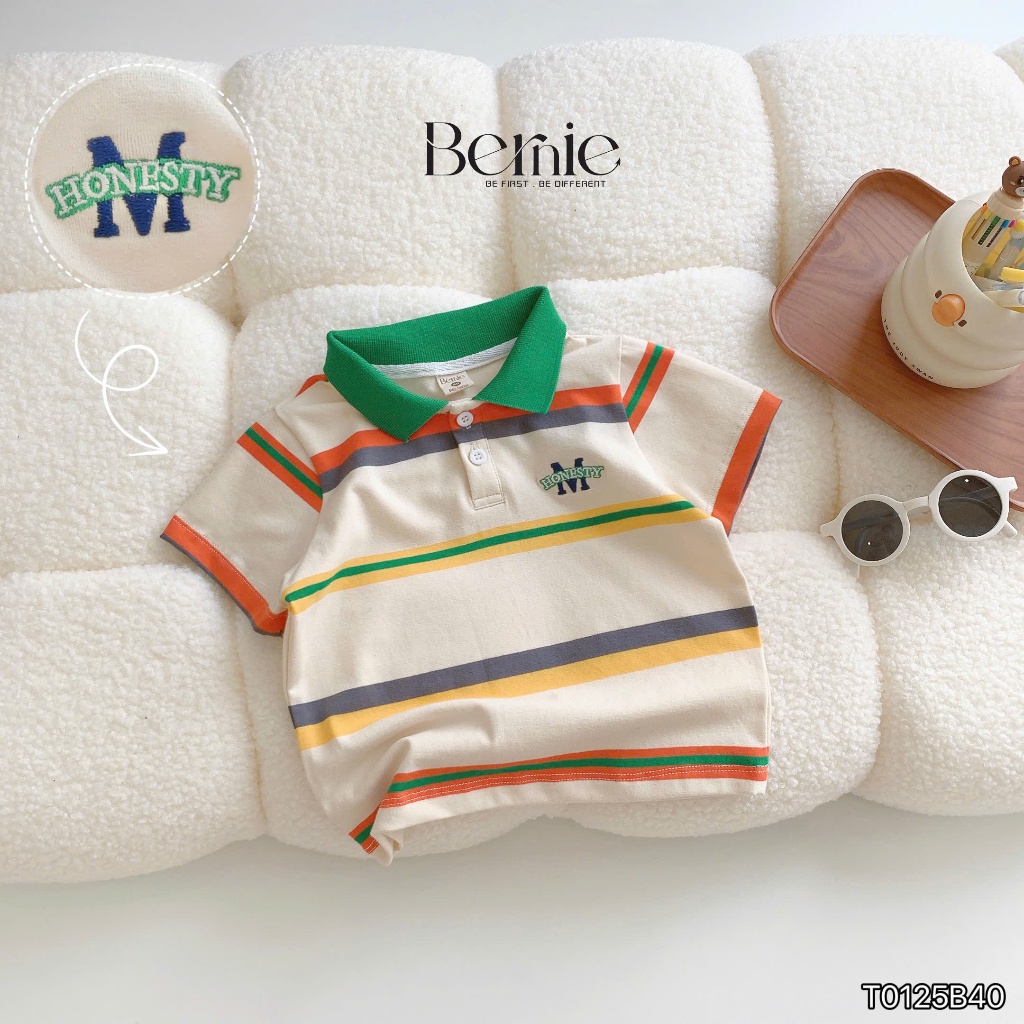 Bộ polo cộc tay bé trai Honesty kẻ màu nổi bật Bernie - Bộ bé trai mùa hè 9-24kg - T0125B40