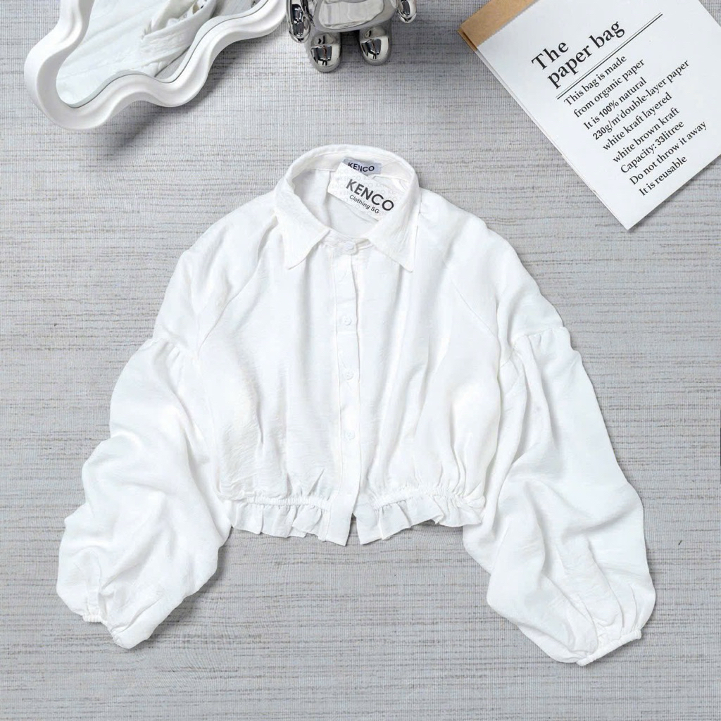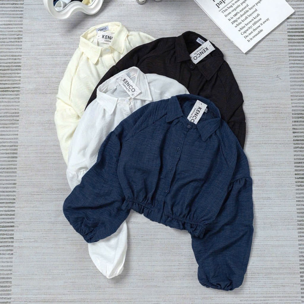 Áo Sơ Mi Dáng Croptop Tay Bồng Chun Dưới A3136 Kenco clothing Thời Trang Nữ Bigsize