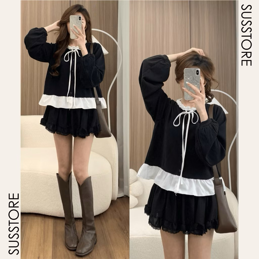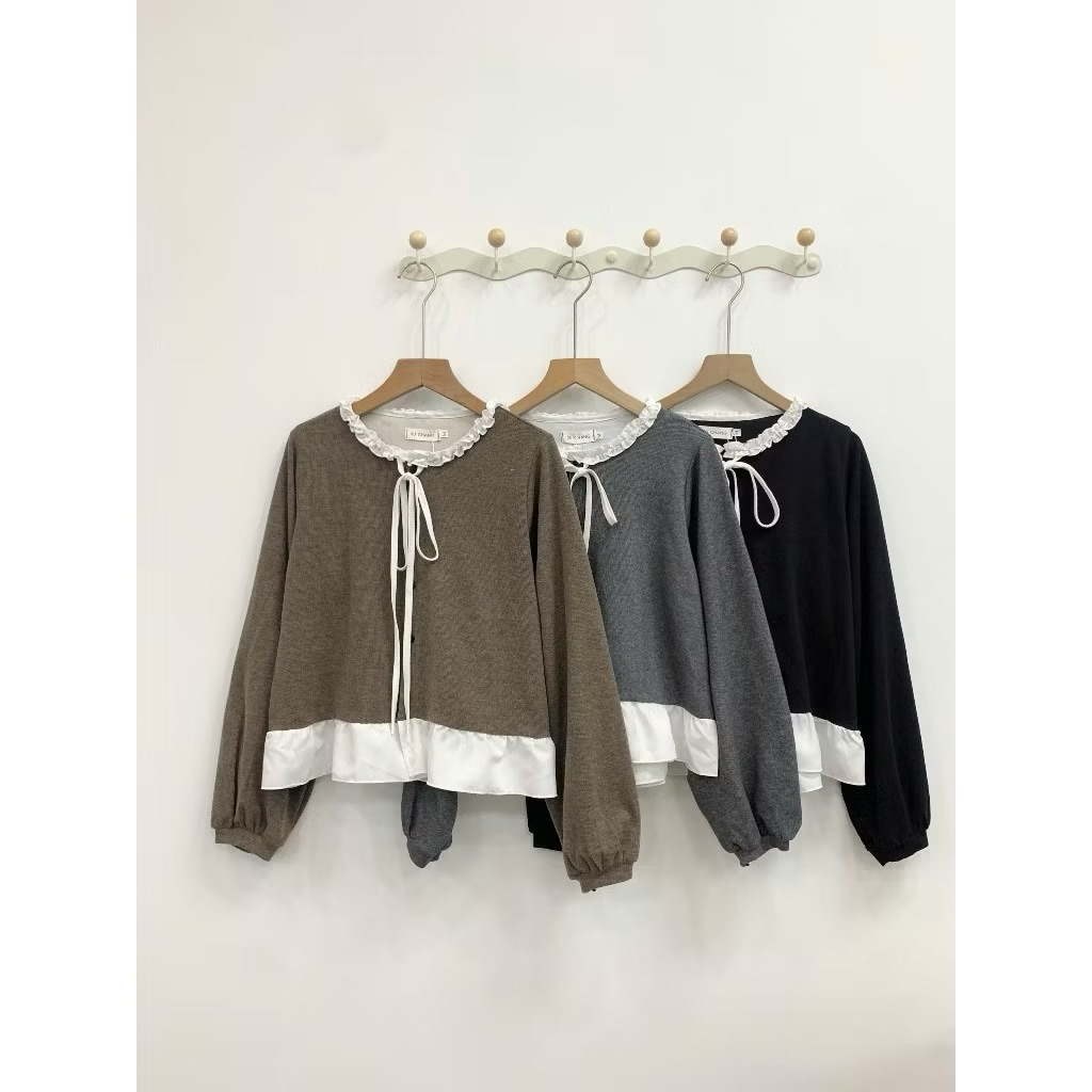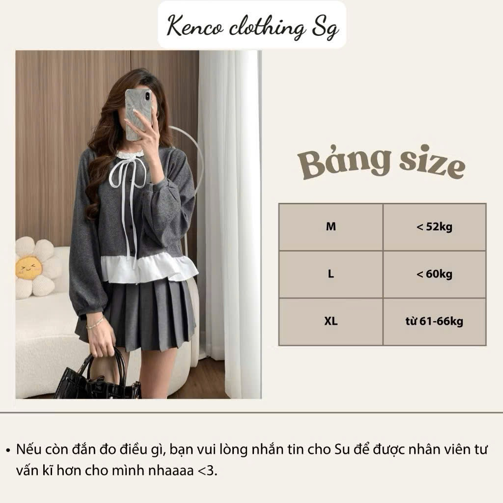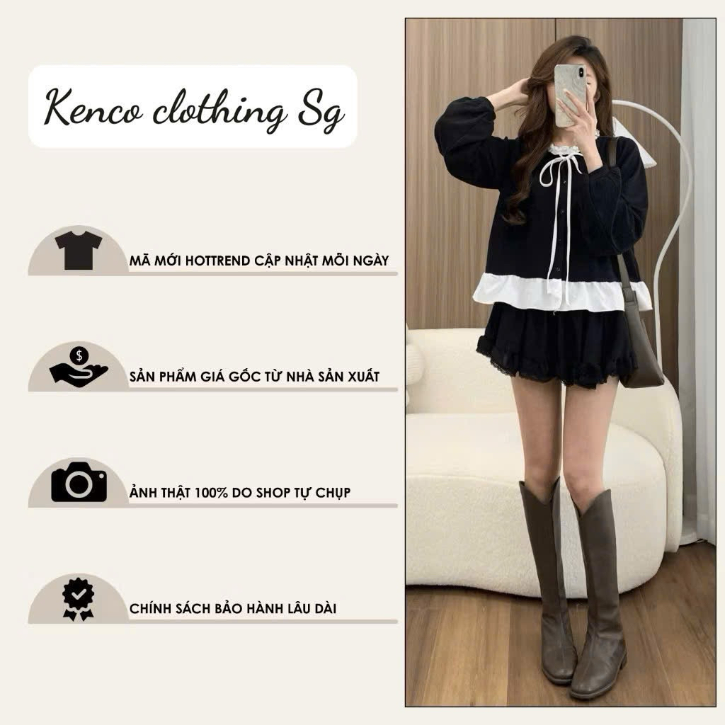 Áo Nỉ Tăm Thỏ Phối Cổ Bèo Nơ Buộc A7142 KENCO Thời Trang Nữ Bigsize