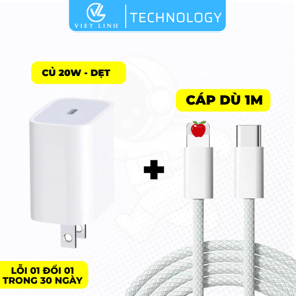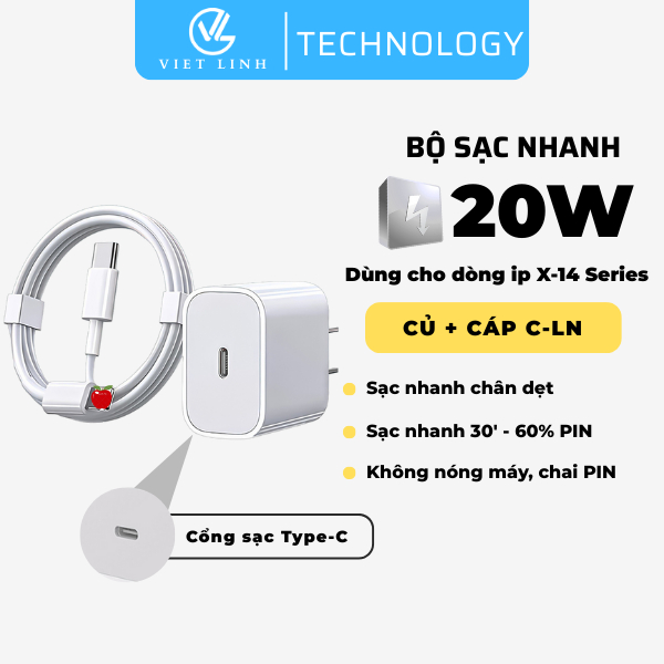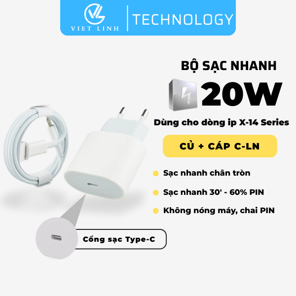 Bộ Sạc Nhanh 20w Chân Tròn Đầu Type C, Chống Cháy, Sạc Đủ Dòng, Không Loạn Cảm Ứng Cho IP, Lỗi 1 Đổi 1 - Việt Linh Store