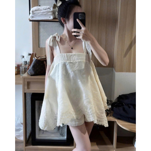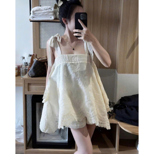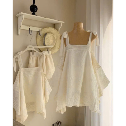 Set Áo 2 Dây Bản To Ren Dáng Thụng Phối Quần Đùi Kem Tôn Dáng Fumistore