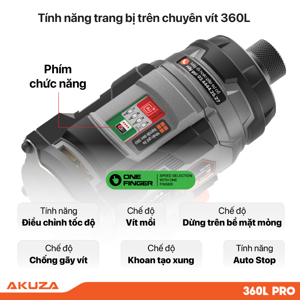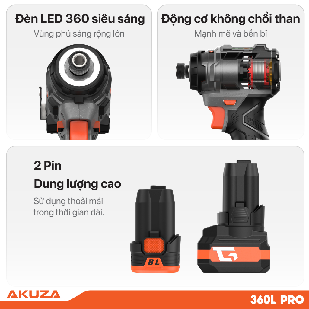Máy Vặn Vít 360L PRO Akuza ,Có chế độ xung, 1Pin 4Cell+1Pin 8cell - Nhỏ Gọn - Cực Khỏe, Không Chổi Than