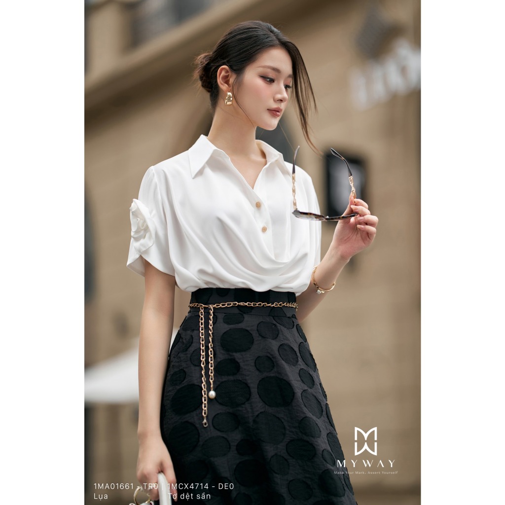 Áo Sơ Mi Nữ MY WAY Công Sở Cách Điệu Đính Hoa Cao Cấp 1MA01661