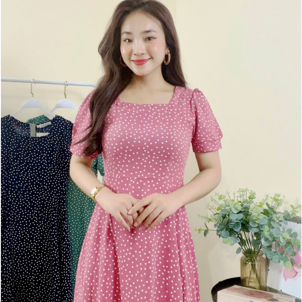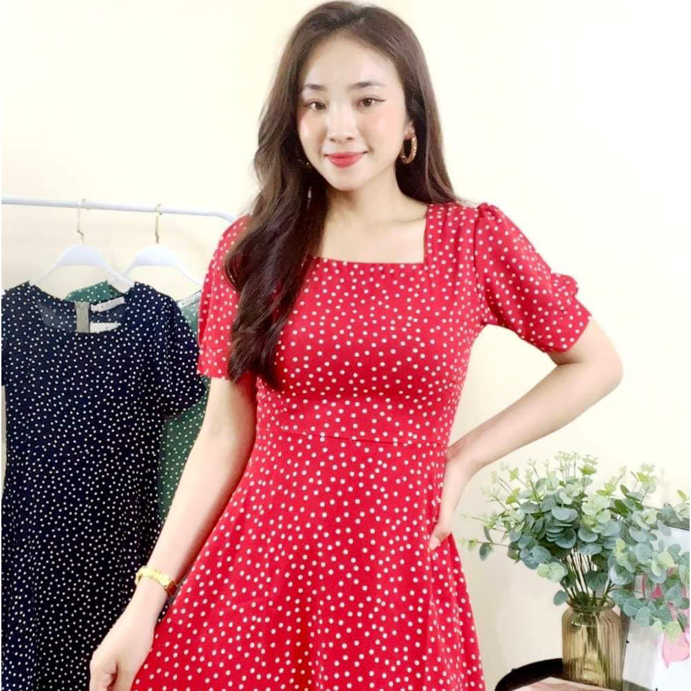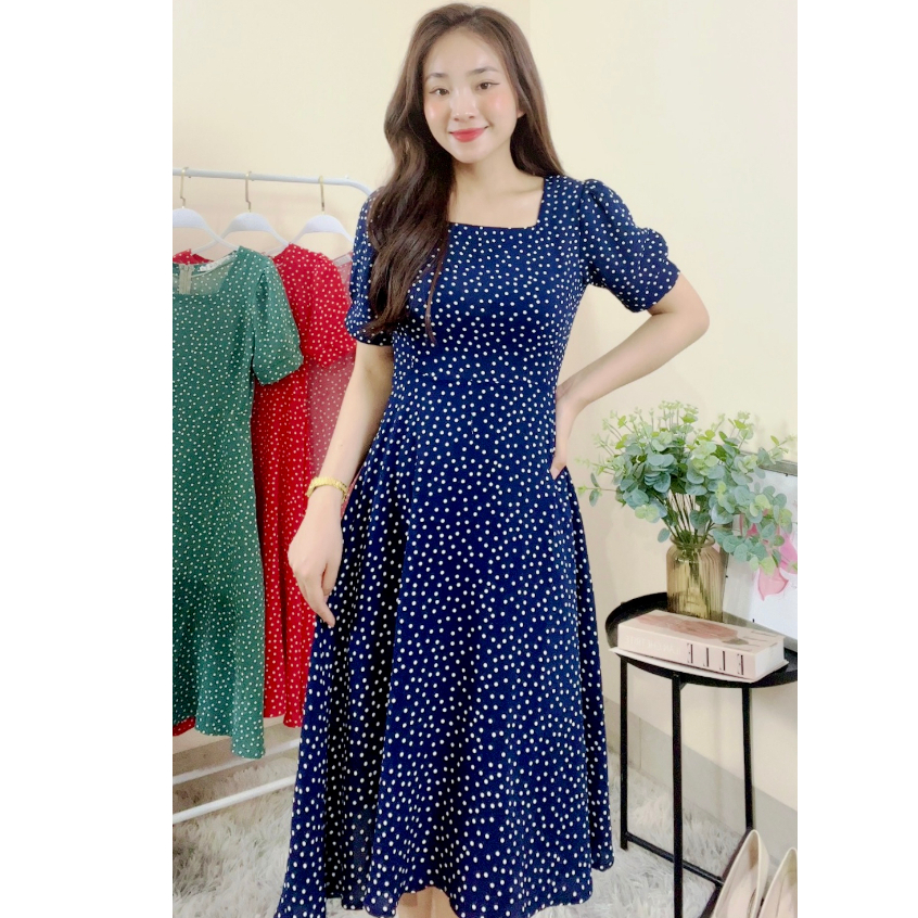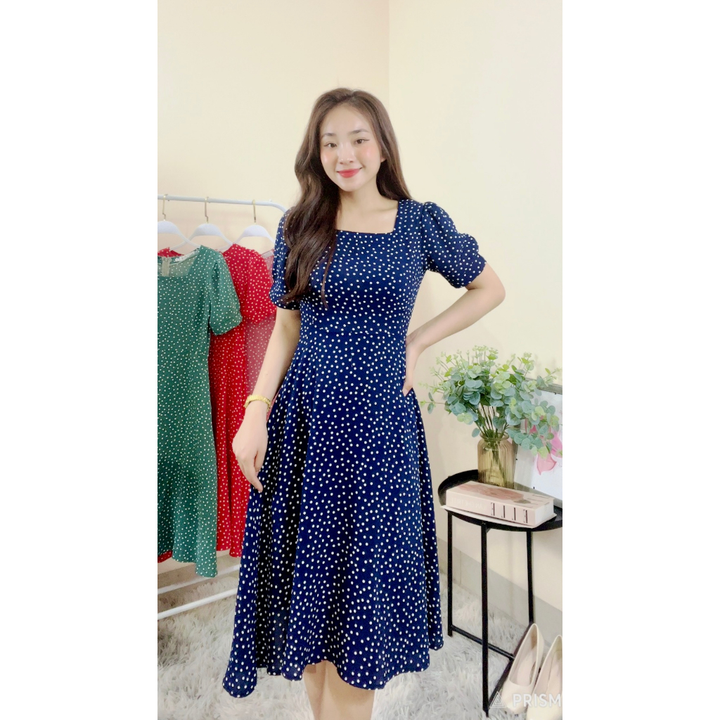 Váy Nữ Thiết Kế Tay Bồng Họa Tiết Chấm Bi V3, Đầm Nữ Chất Liệu Lụa Hàn Cao Cấp Mềm Mát