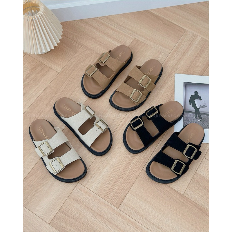 SBN Buckle Sandal - DÉP HAI QUAI NGANG THỜI TRANG XĂNG ĐAN DA MỀM MŨI TRÒN ĐẾ DÀY MỀM MẠI THOẢI MÁI CHỐNG TRƠN TRƯỢT