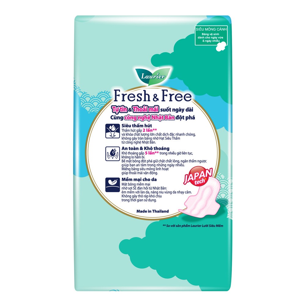 Băng Vệ Sinh Laurier Fresh & Free Siêu Mỏng Có Cánh 20 Miếng