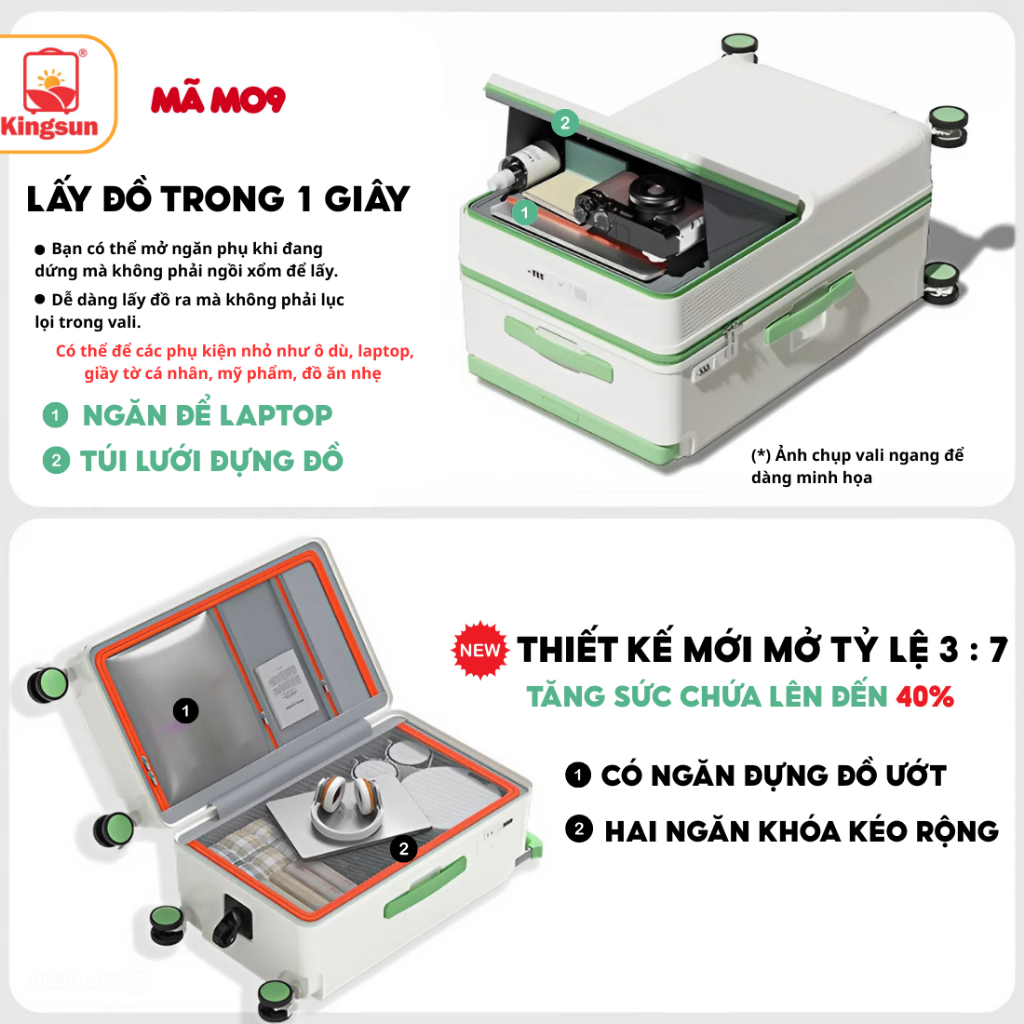 Vali Kéo Du Lịch Cao Cấp Tiyfiy Size 20/24/28inch KS-M09 Có Ngăn Đựng Laptop Nhựa Abs+PC, Bảo Hành 5 Năm