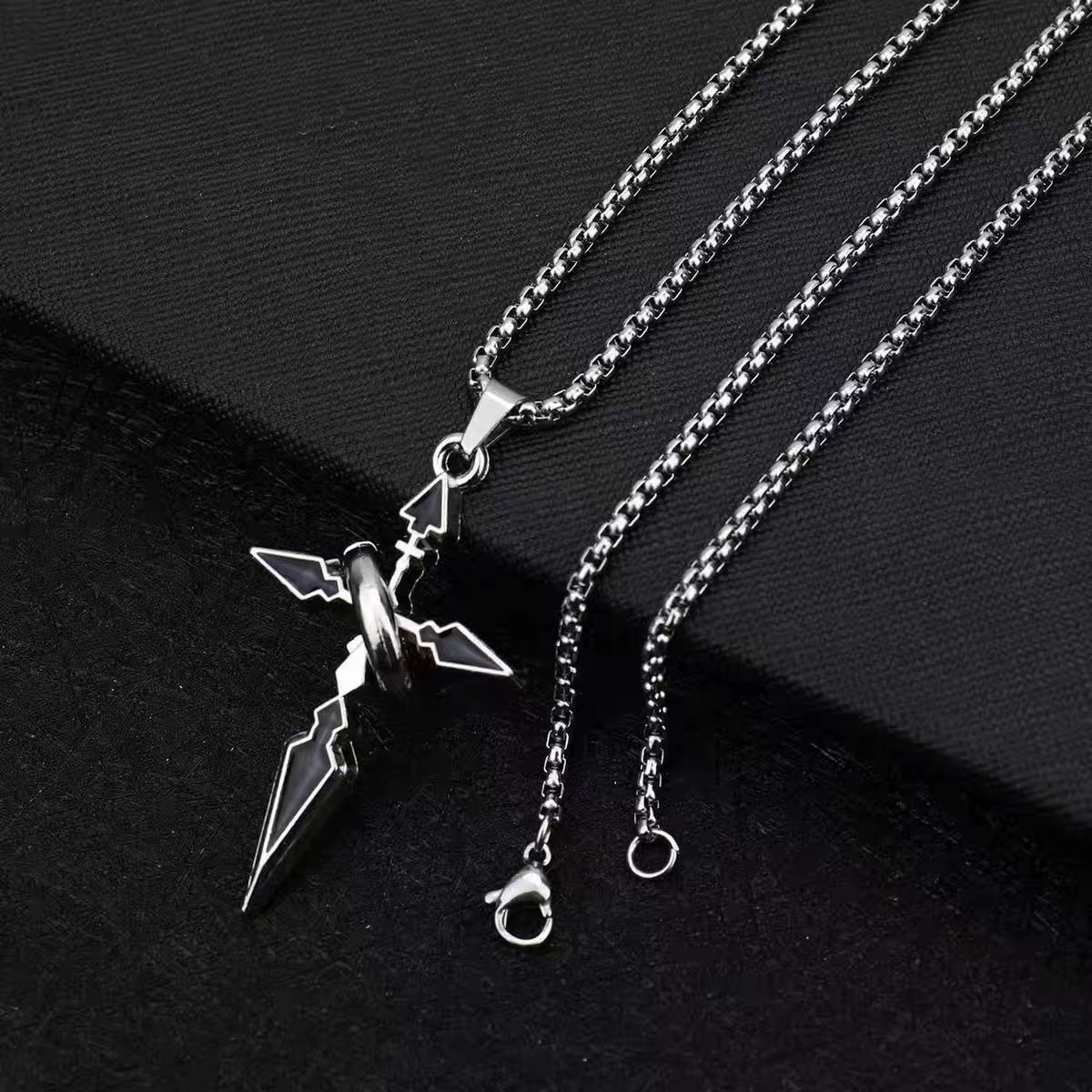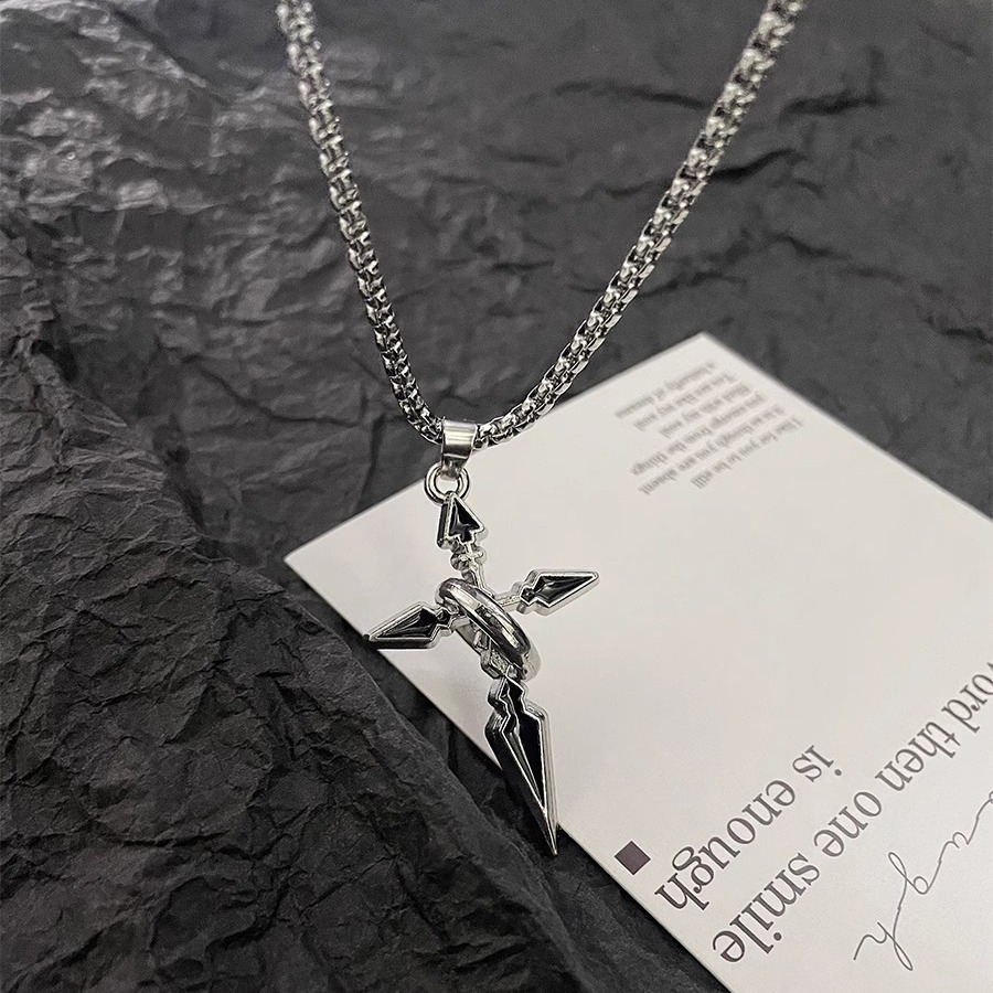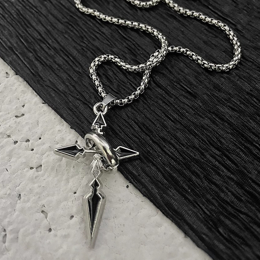Vòng cổ mặt dây chuyền chéo phong cách Punk Thép titan chống thấm nước chống phai màu