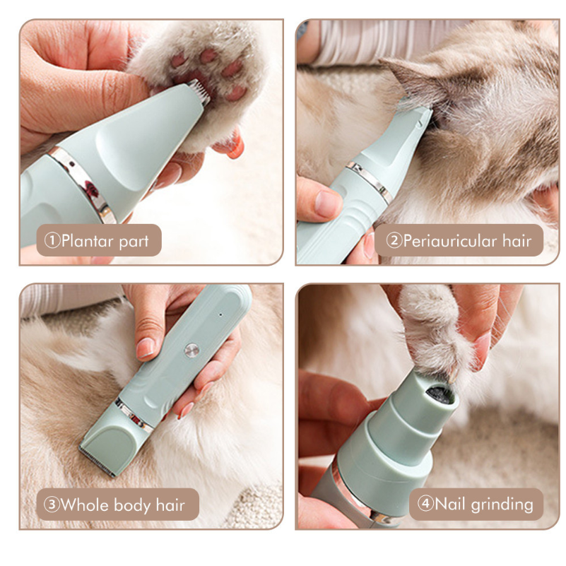 Bộ Tông Đơ Cắt Tóc Cho Thú Cưng Chó Mèo Chải Lông Với 4 Đầu Độ Ồn Thấp USB 3 Trong 1