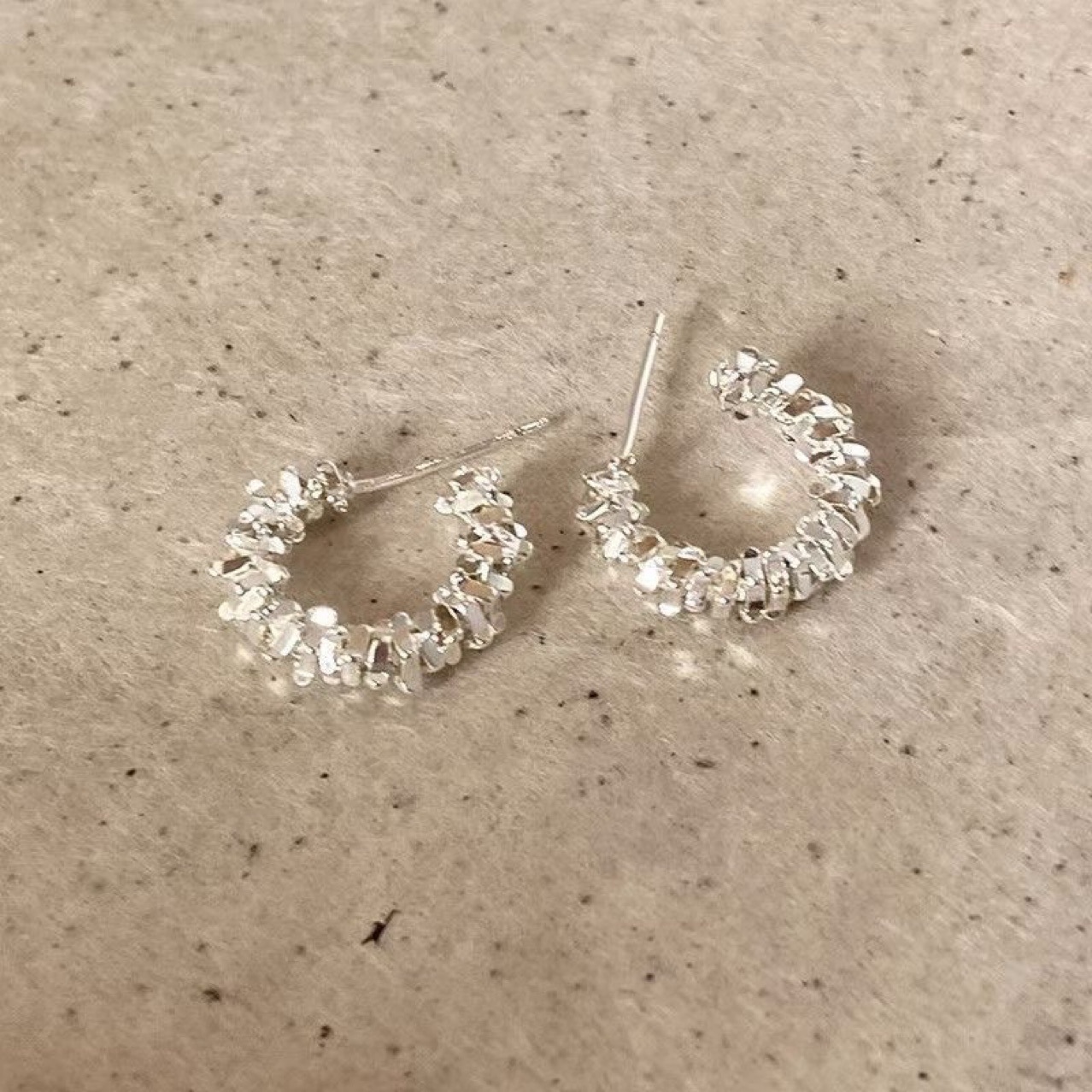 Khuyên tai bạc bụi sang trọng nhẹ nhàng, tinh tế và thanh lịch cho vẻ ngoài thanh lịch.