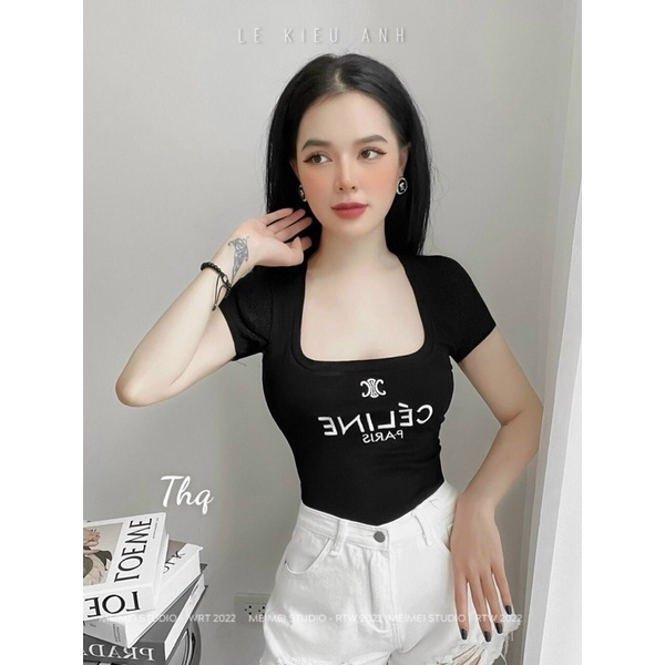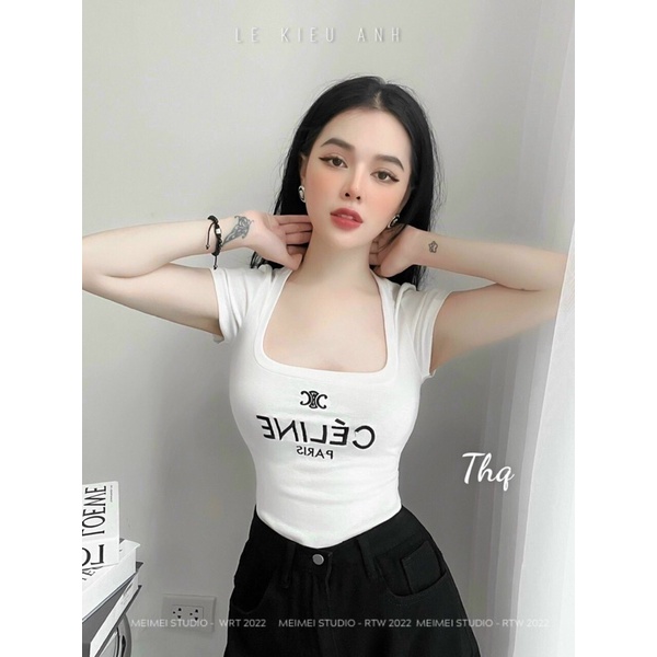Áo thun kiểu dáng ôm body cổ vuông sexxy in chữ AT6424-E8TH - NhiNhi Shop