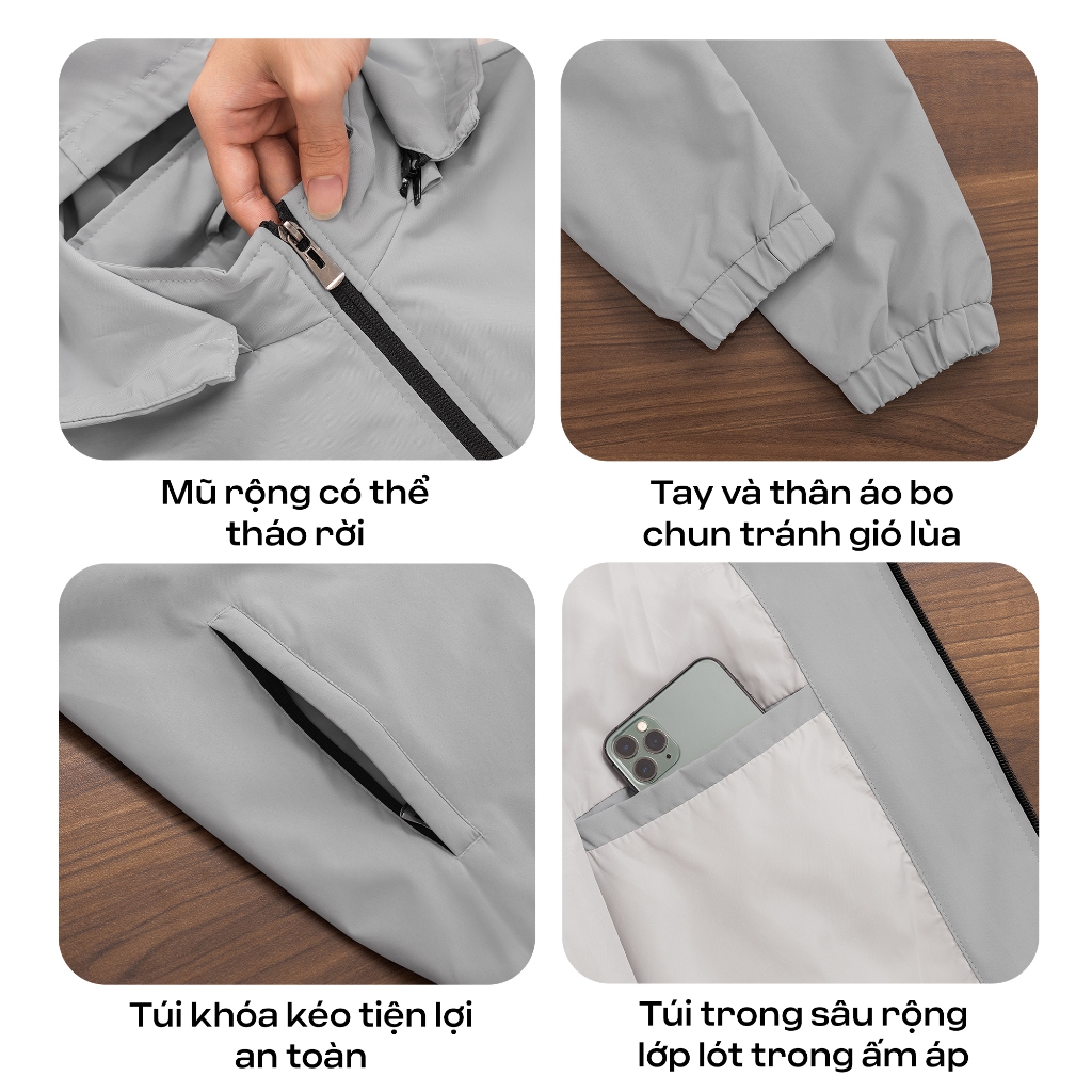 Áo Khoác Gió Nam GUZADO Cao Cấp, Giữ Ấm Tốt, Form Regular Fit Thoải Mái, Phong Cách Năng Động GAG15