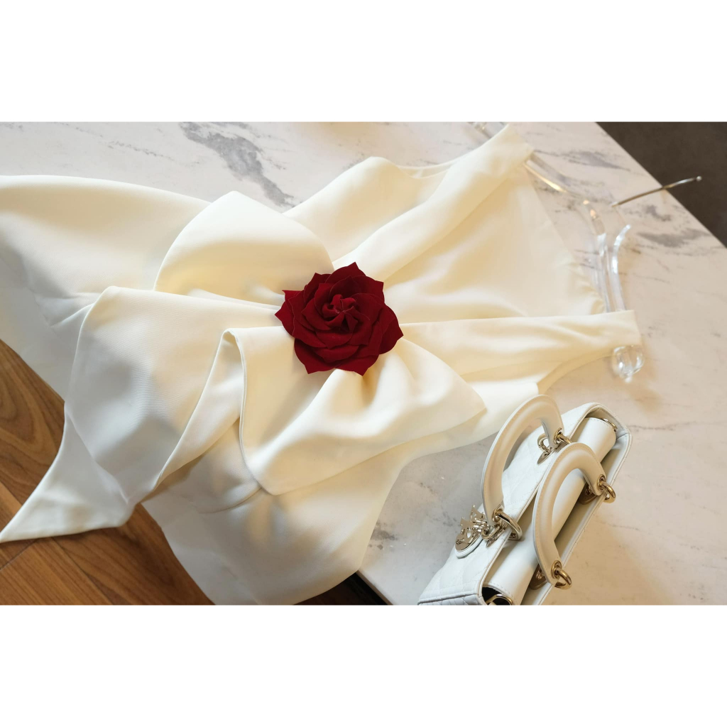 Đầm dự tiệc cổ tròn kèm hoa thanh lịch ROSE DRESS