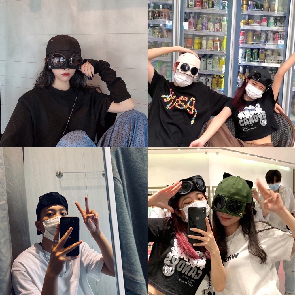 Mũ phi công kèm mắt kính Jengiang phong cách Hàn Quốc thời trang nam nữ Mũ lưỡi trai unisex dạo phố du lịch