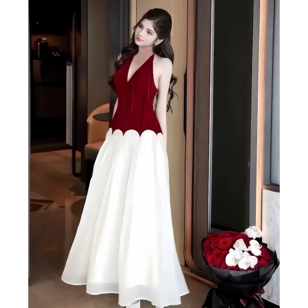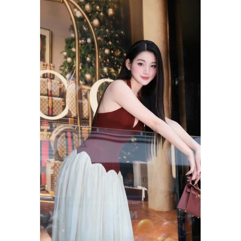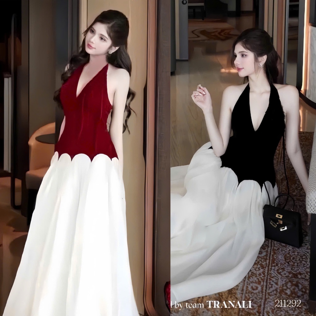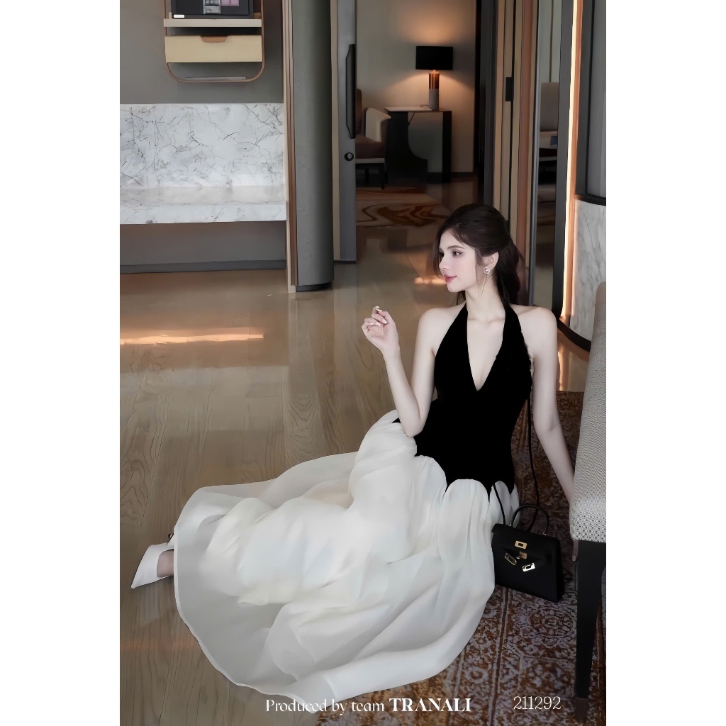BIGSIZE HIẾU HIẾU (55-100KG) - Váy cổ yếm dáng dài phối voan xinh xắn D397