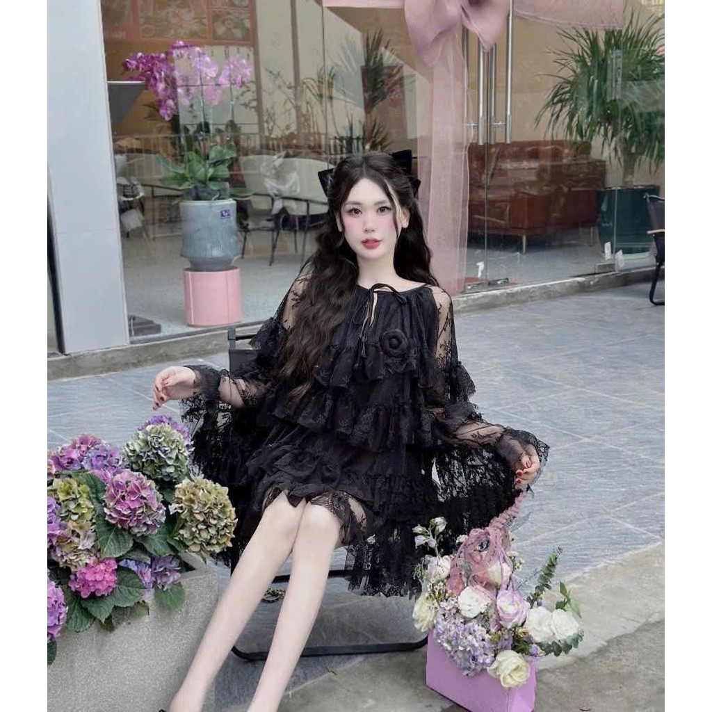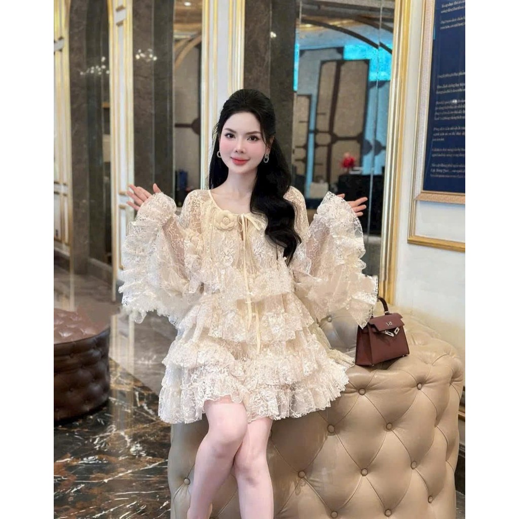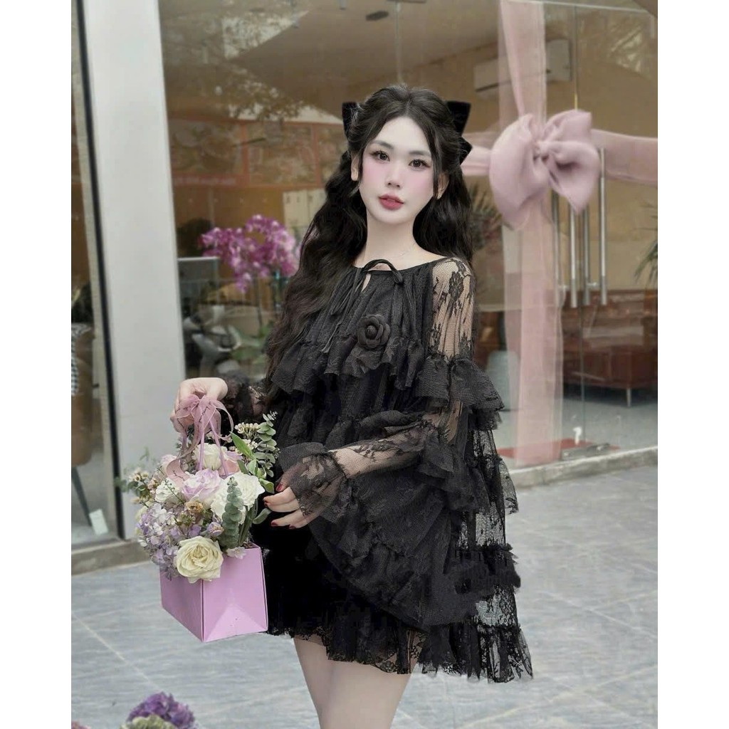 BIGSIZE HIẾU HIẾU (55-100KG) - Váy nữ babydoll thiết kế ren tầng tay dài dễ thương D458