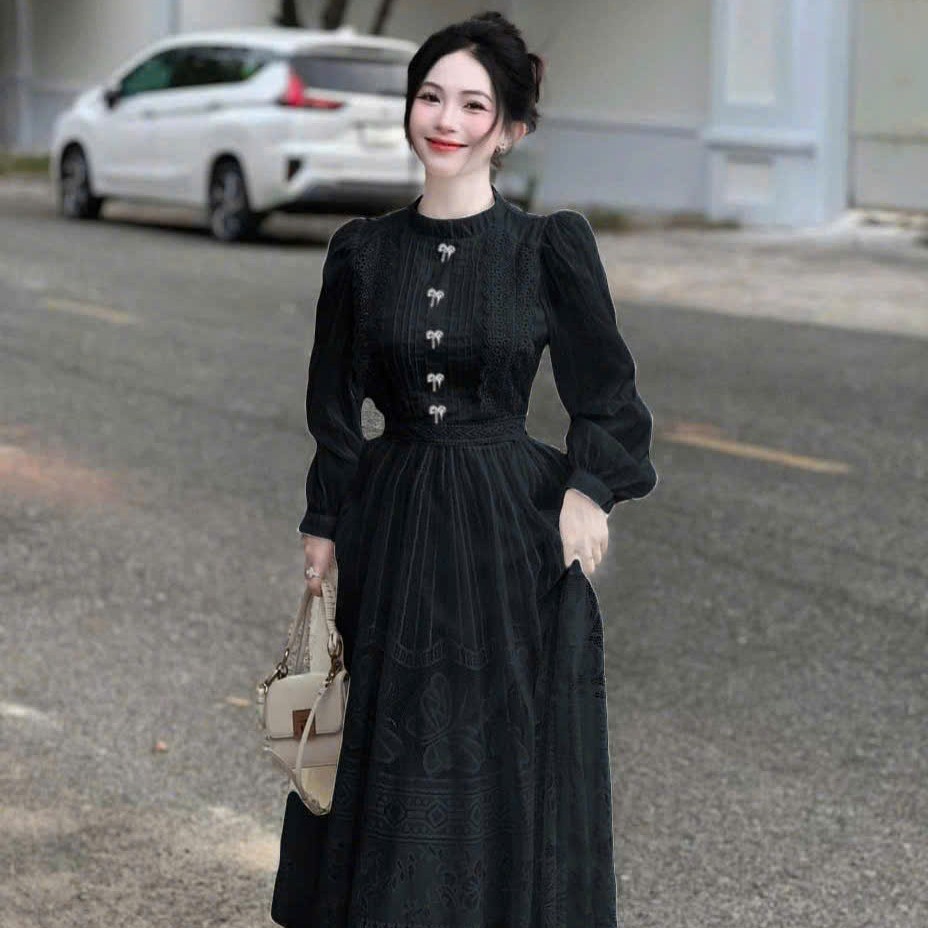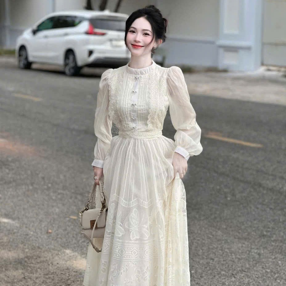 BIGSIZE HIẾU HIẾU (55-100KG) - Váy voan voa phối ren tay dài dáng maxi xinh xắn D429