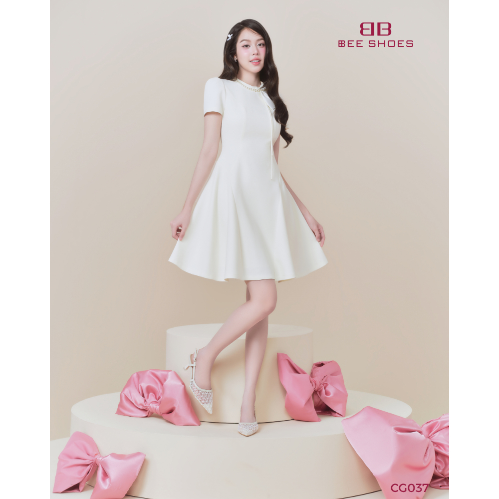 (BST Trạm "Dịu-Êm") Giày cao gót nữ BEESHOES mũi nhọn đế nhọn cao 7 phân sẵn màu kem - đen CG037