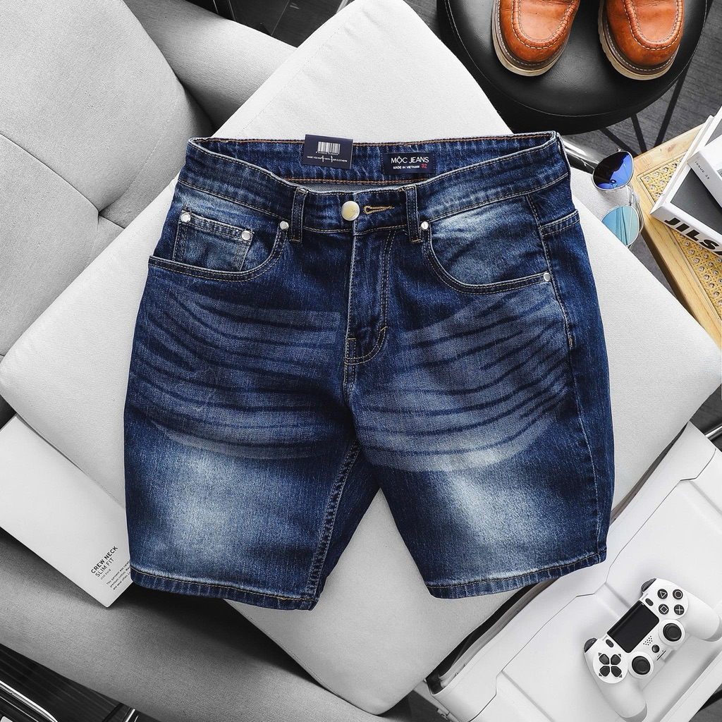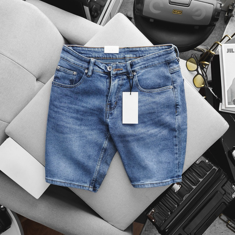 Quần short big size nam xanh trơn jean co giãn ôm gọn size lớn (95-120kg) vnxk