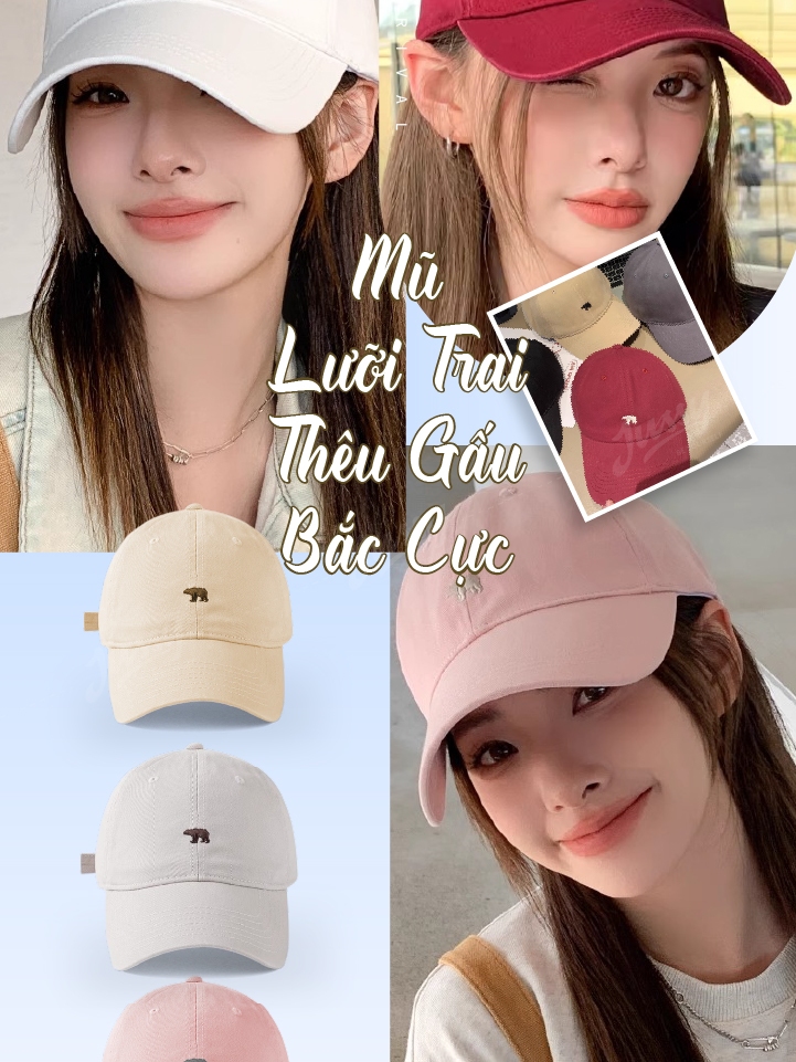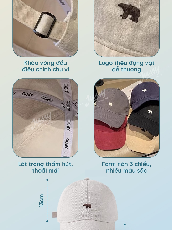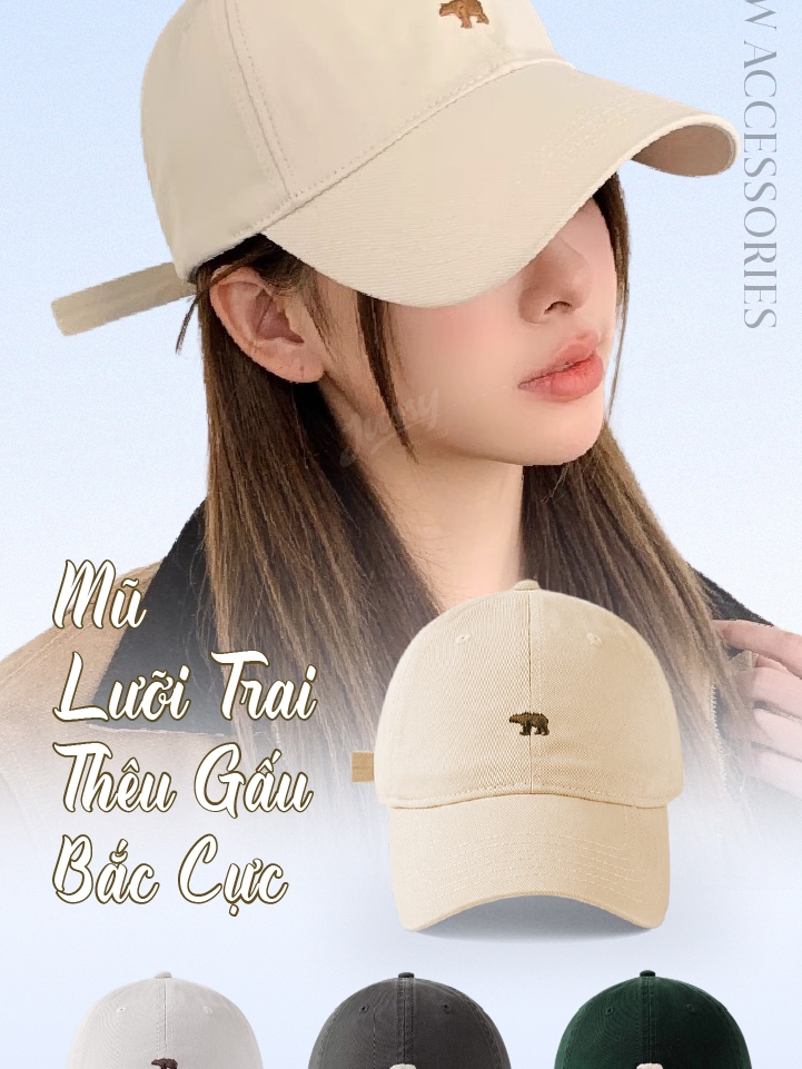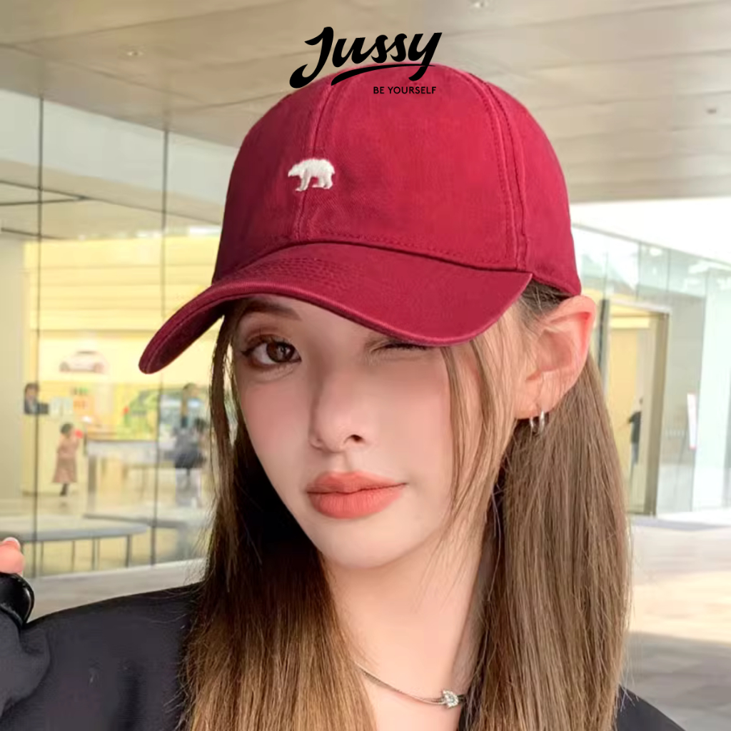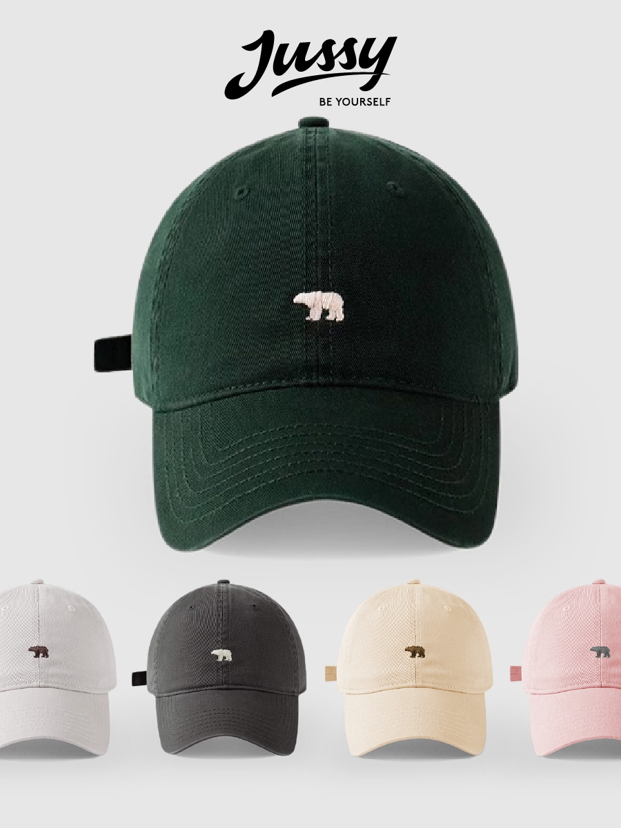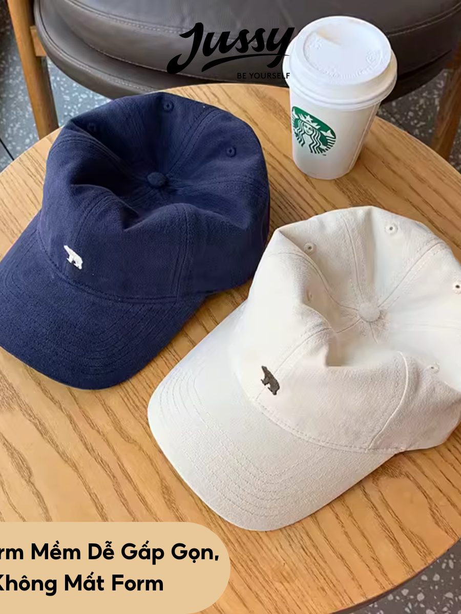 [Choice] Mũ lưỡi trai nam nữJussy Official thêu hình gấu bắc cực, nón lưỡi trai vải kaki form mềm cá tính