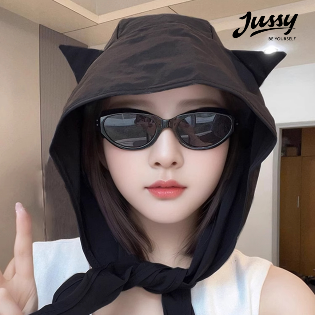Mũ Trùm Đầu Tai Mèo Đa Năng 3in1 Gồm Mũ, Khăn Choàng Và Túi Đeo Chéo JK56 Jussy Official Kiểu Mũ Chống Nắng Vải Dù Mát