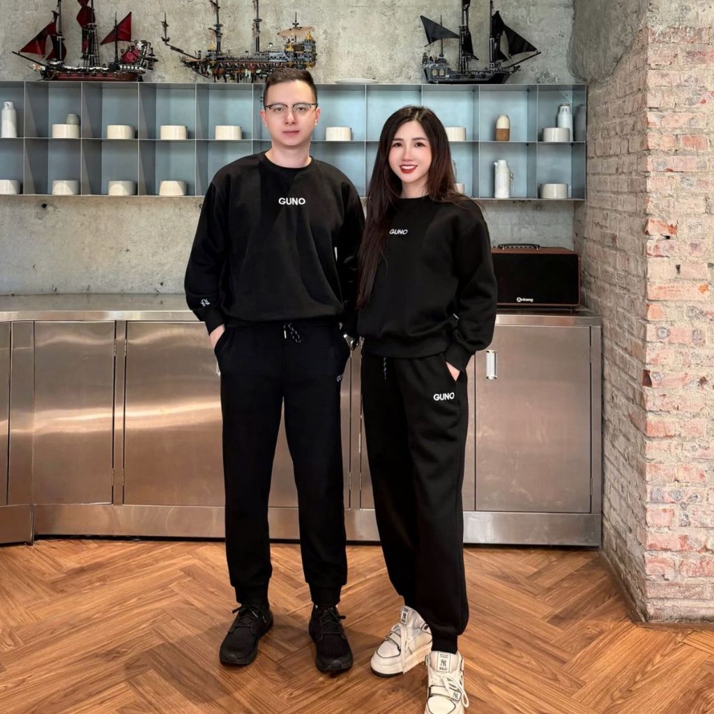 [XẢ] Bộ Quần Áo Nỉ Nam Nữ GUNO Cổ Tròn Logo Thêu Tay Kèm Quần Bo Gấu Set Bộ Thu Đông 25BG150/BB179
