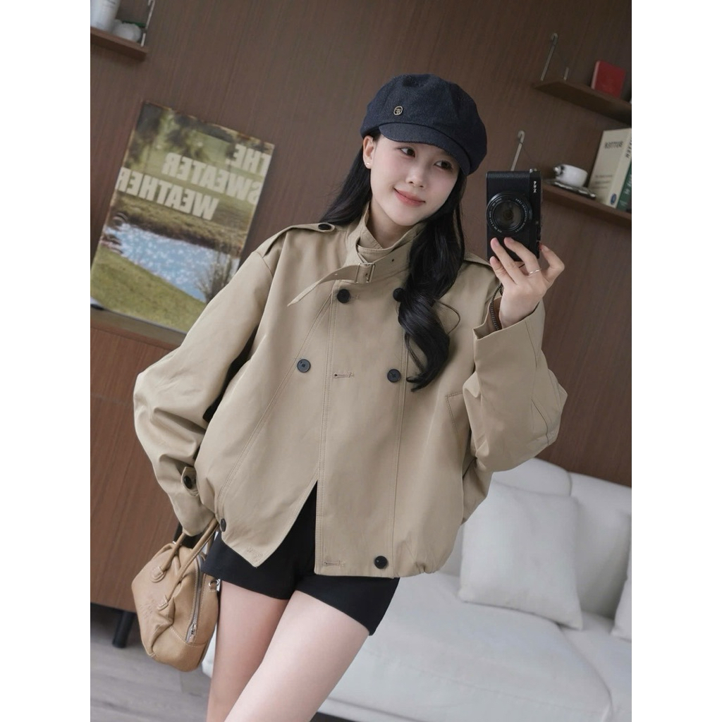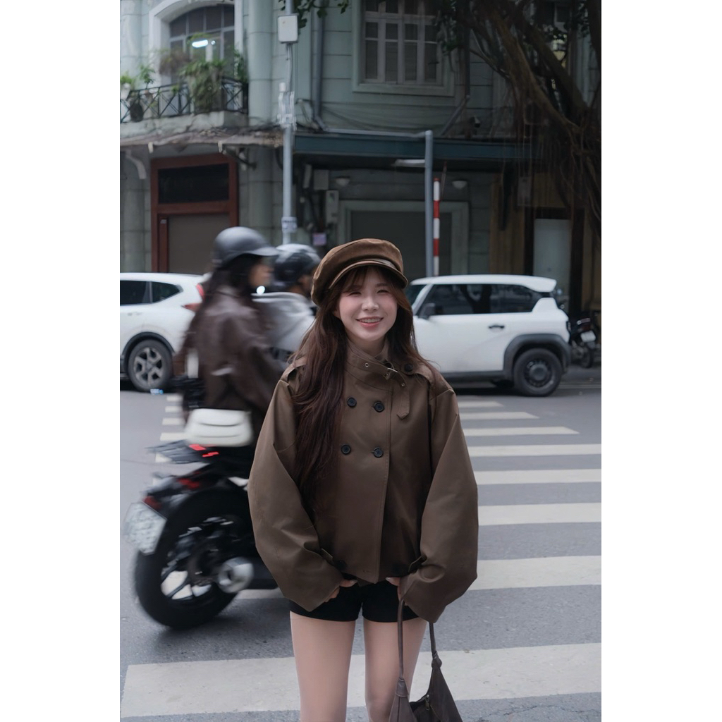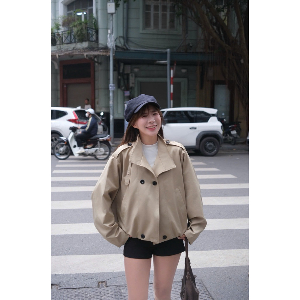 Áo khoác kaki măng tô form BOXY có cầu vai 6 cúc Nữ the.sweaterweather TSW