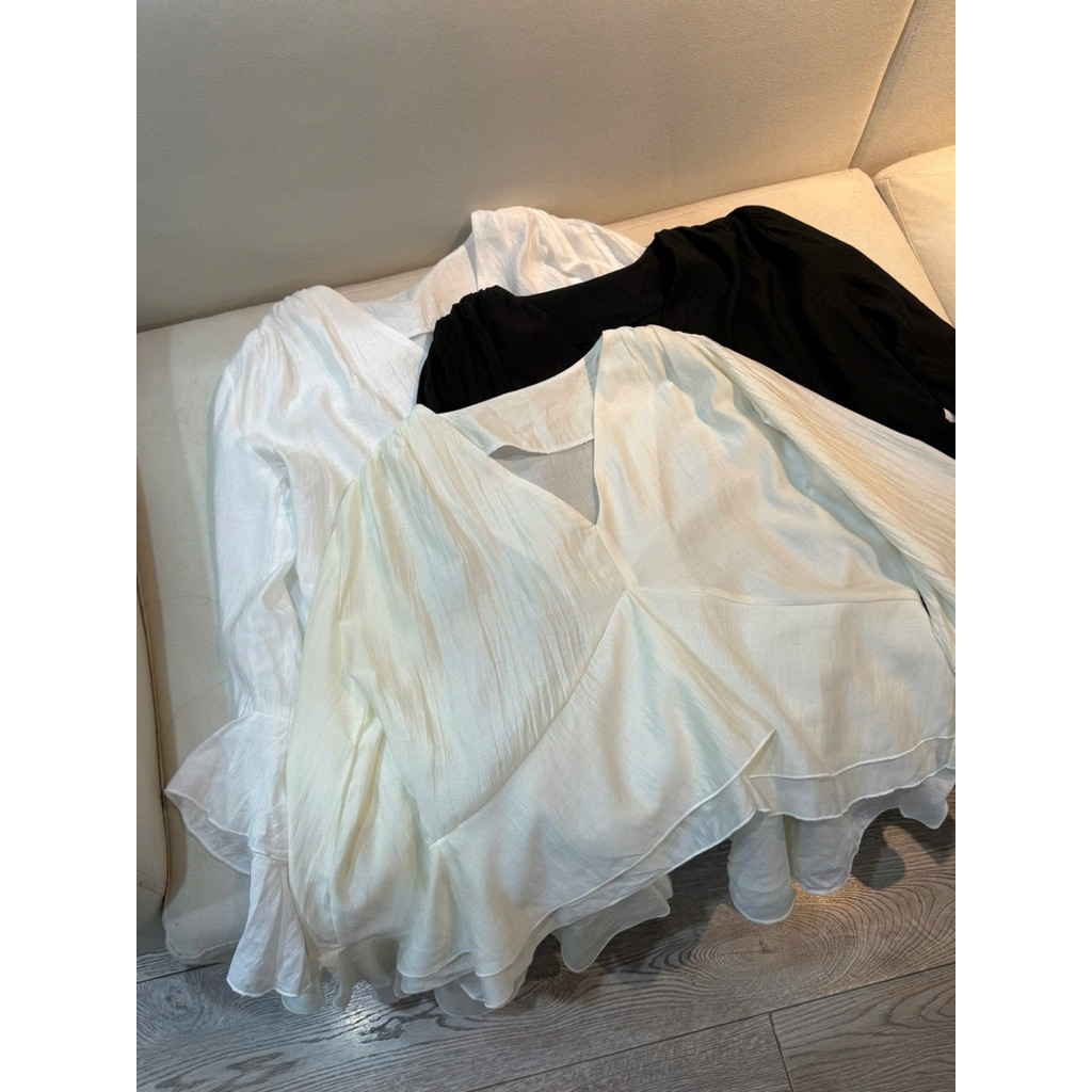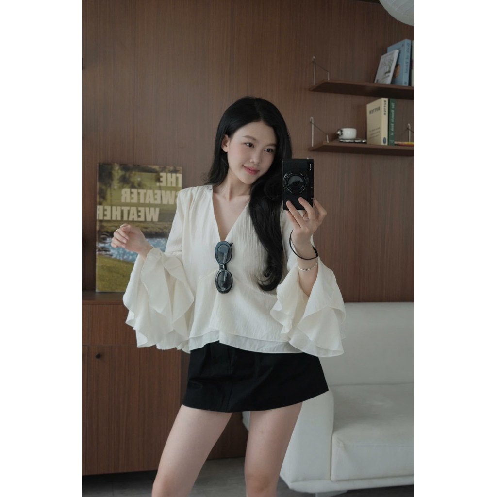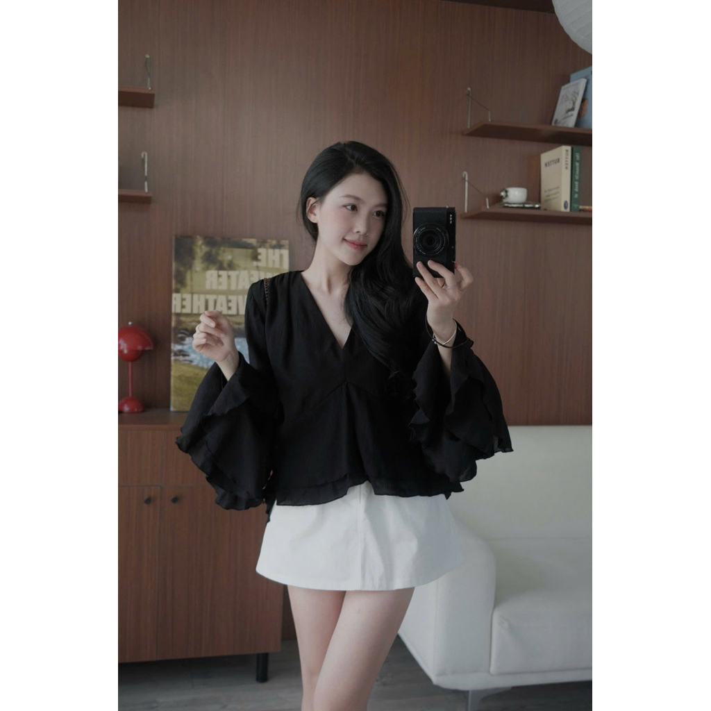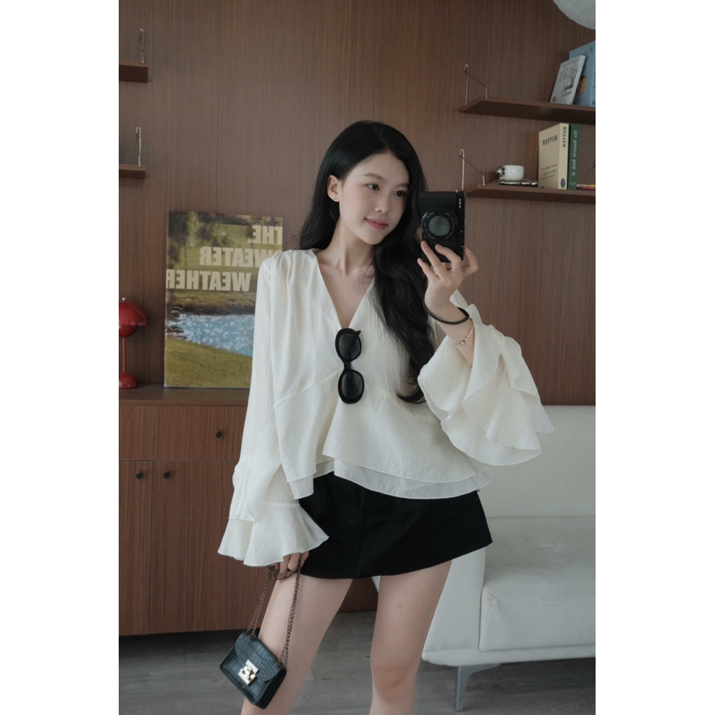 Áo đũi tơ cổ V tay dài loe xoè Nữ the.sweaterweather TSW