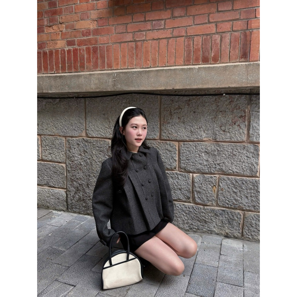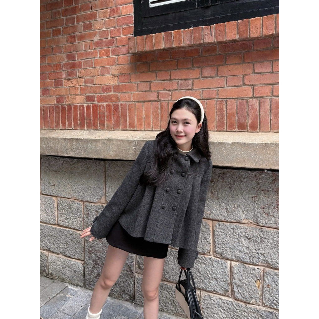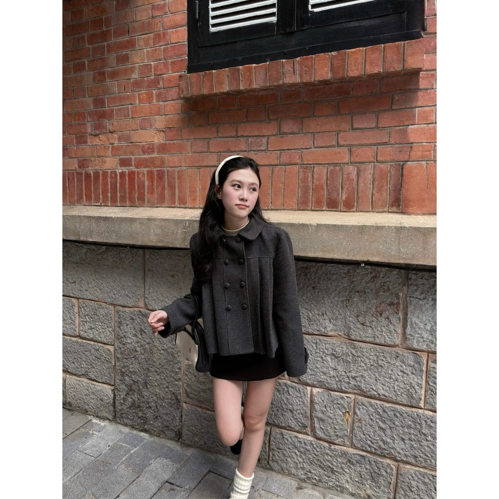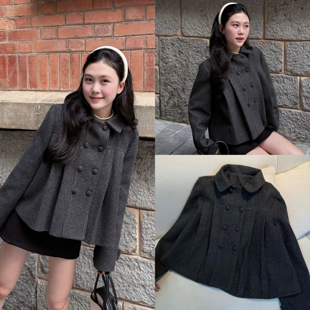 Áo khoác dạ cổ bẻ 2 hàng cúc bọc xếp ly dáng A Nữ the.sweaterweather TSW