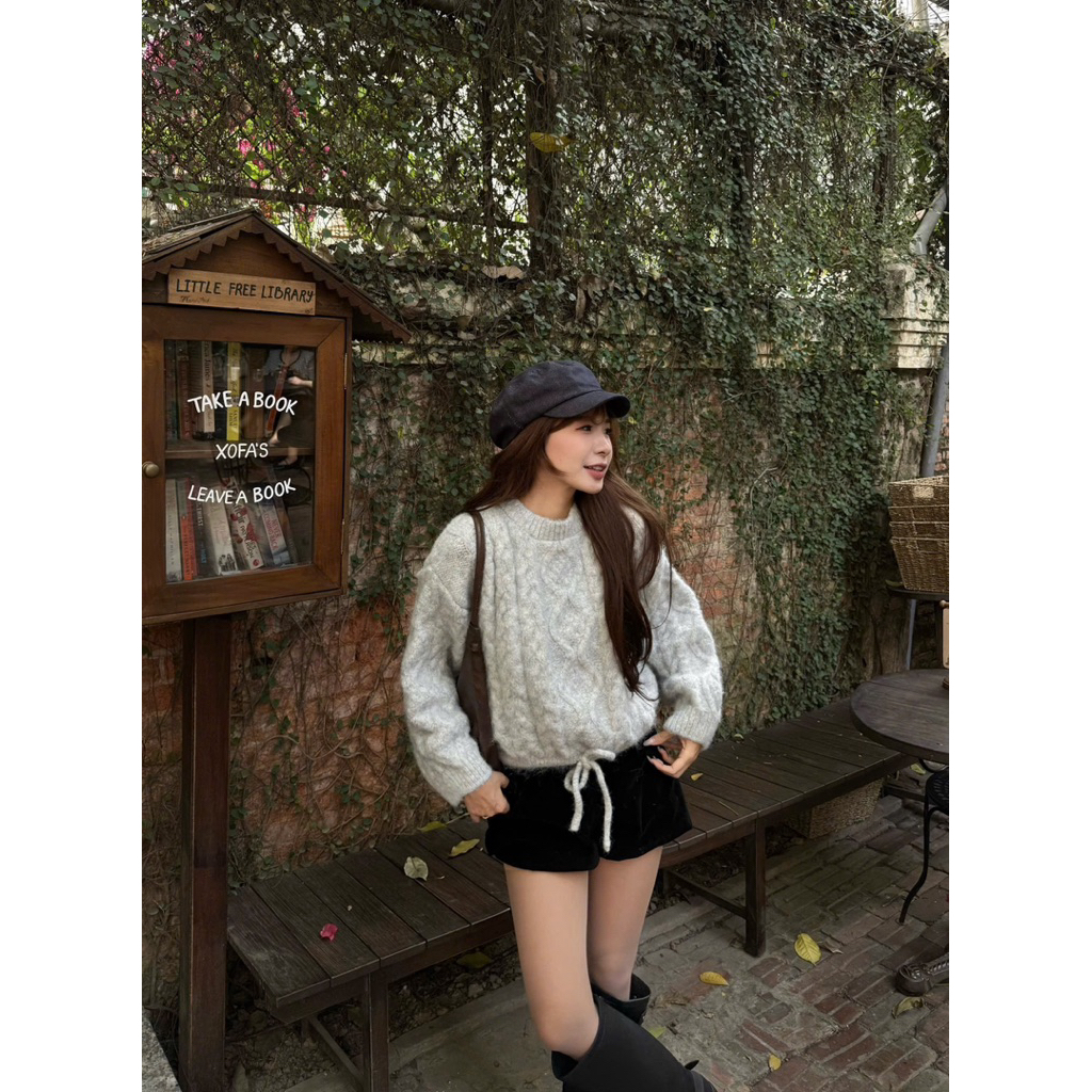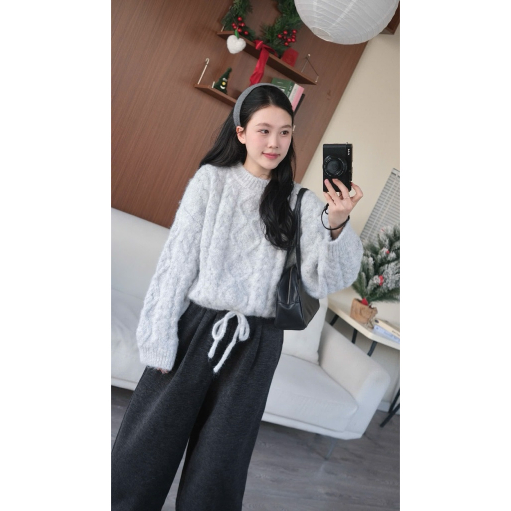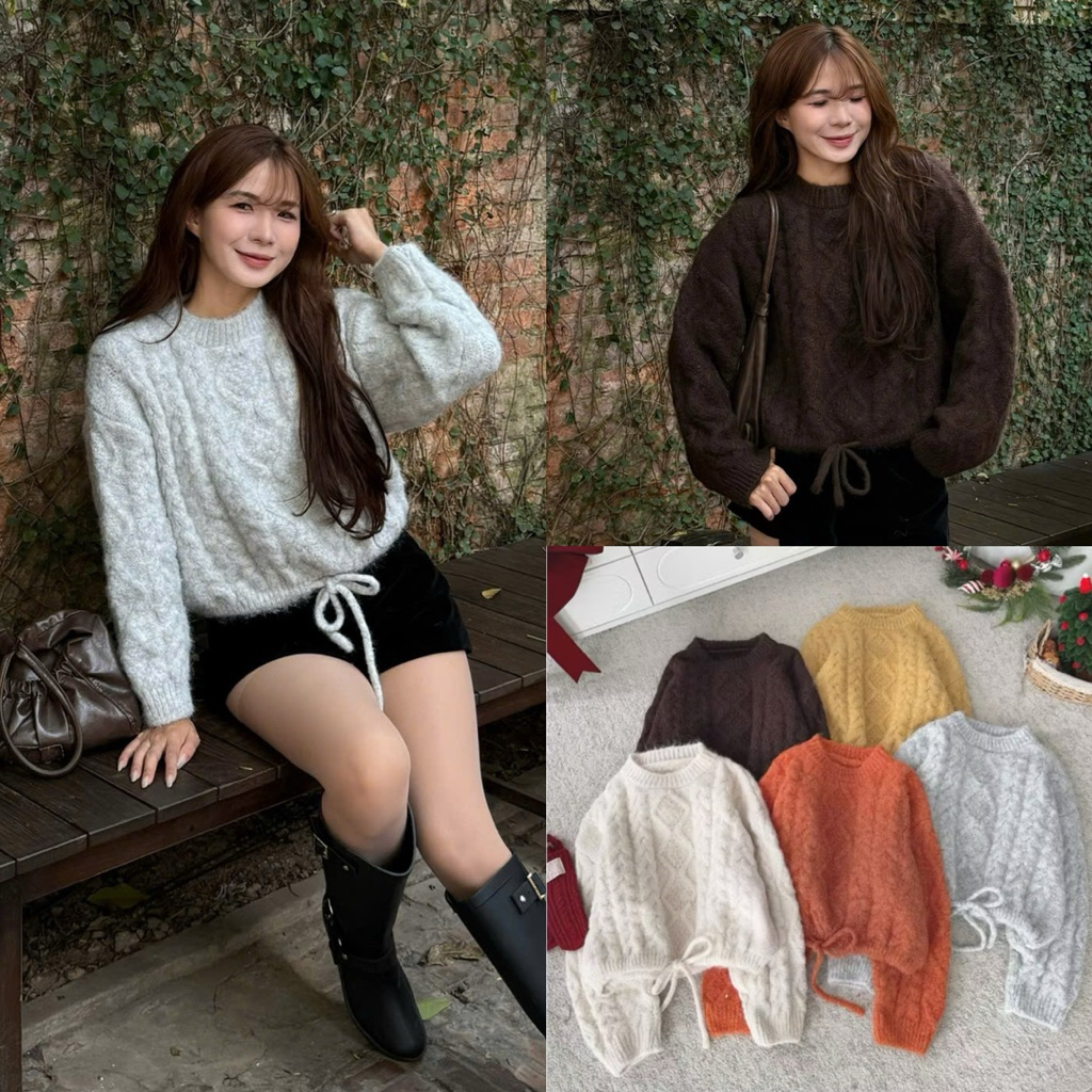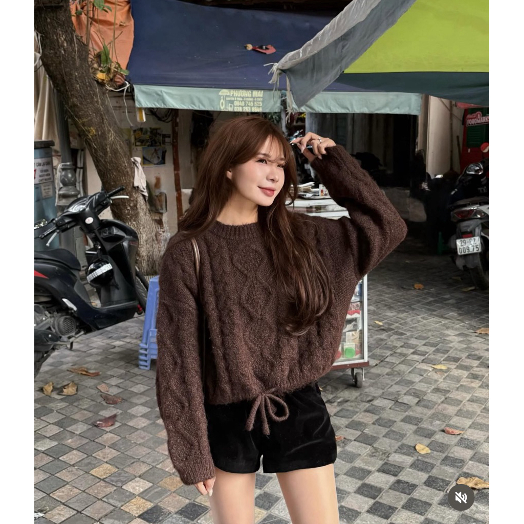 (Sẵn) Áo len vặn thừng dáng croptop dây rút siêu dày Nữ the.sweaterweather TSW