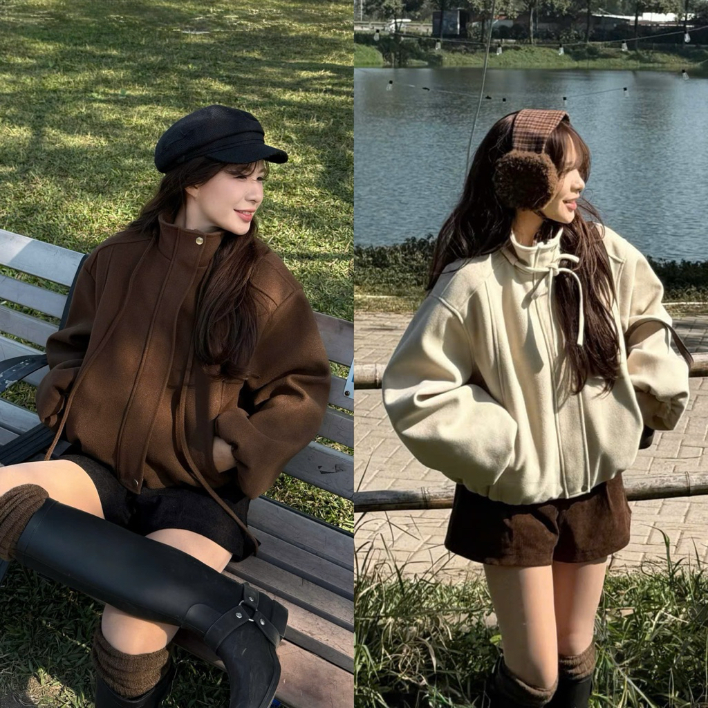 Áo khoác dạ buộc dây cổ kéo khoá 3 màu Nữ the.sweaterweather TSW