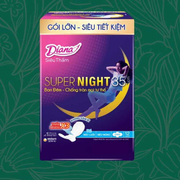 [Diana] Băng vệ sinh ban đêm Diana siêu thấm Supernight 29cm / 35cm gói 12 miếng