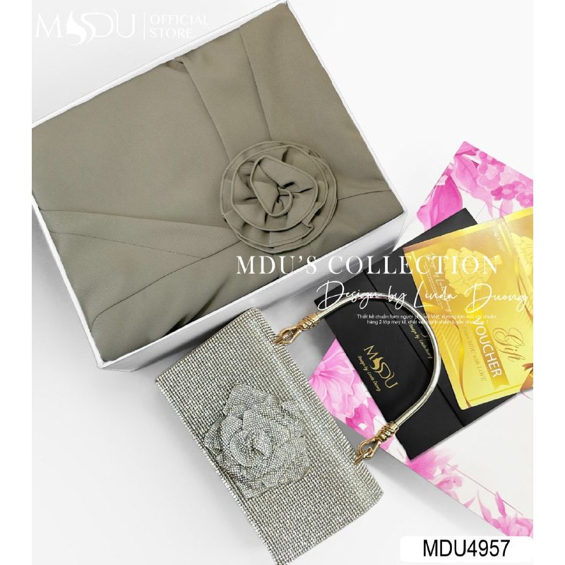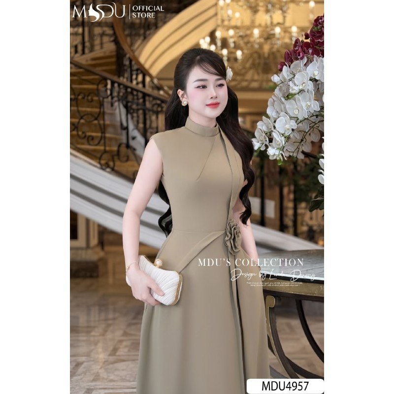 𝐙𝐢𝐧 𝐁𝐨𝐮𝐭𝐢𝐪𝐮𝐞 Váy Công Sở Dáng Dài Cổ Lọ Phối Thắt Eo Gắn Hoa Thanhh Lịch Chất Liệu Chéo Nhật MDU4957