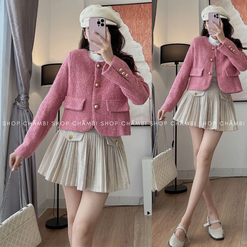 Áo dạ nữ A.663, Áo khoác dạ trơn dáng ngắn tay dài 2 túi giả phong cách basic dễ phối đồ - Shop Chấm Bi