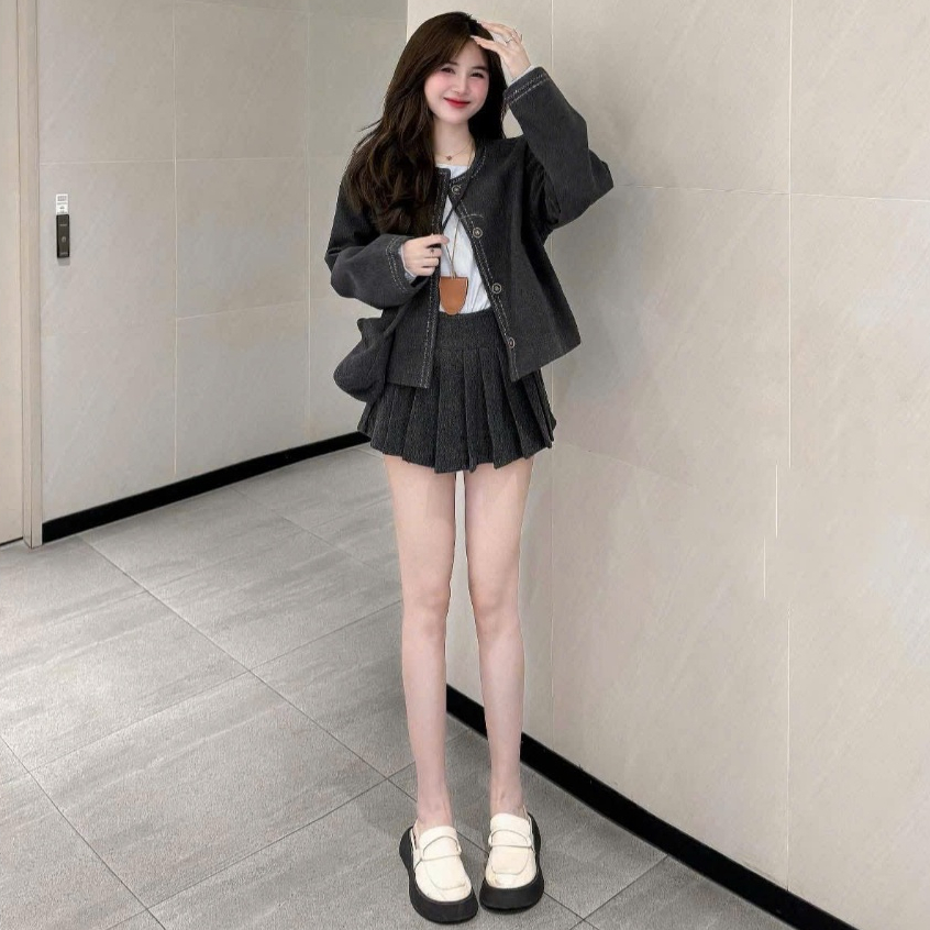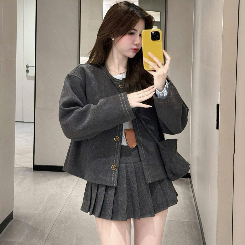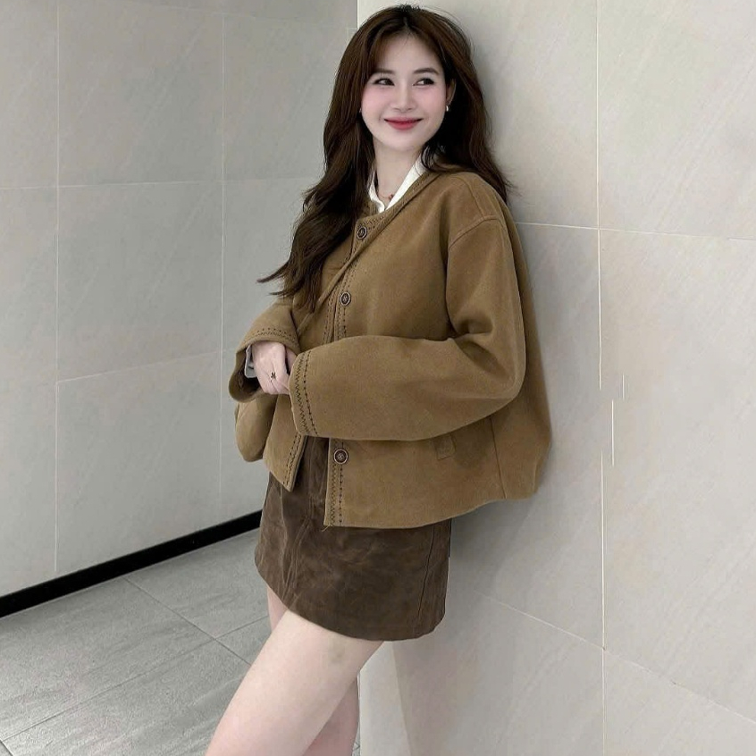 [K KÈM TÚI] Áo dạ nữ A.785, Áo dạ ép cổ tròn dáng lửng 2 lớp dày dặn lót gió thêu viền nổi cúc dọc basic - Shop Chấm Bi