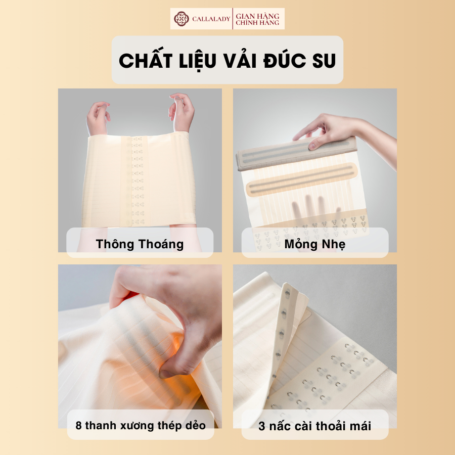 Đai nịt bụng sau sinh Callalady gen bụng giảm mỡ đai latex siết bụng định hình eo chống cuộn vải đúc su thông thoáng