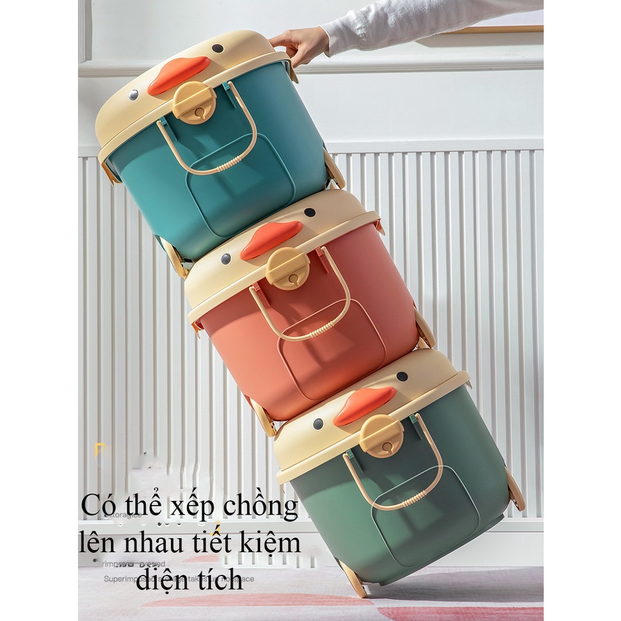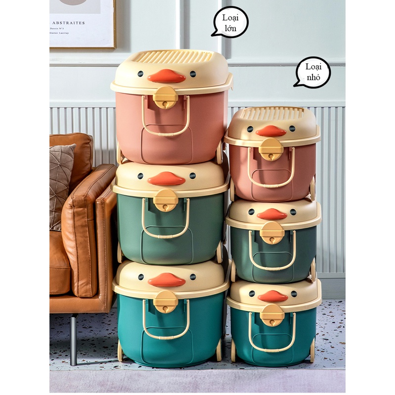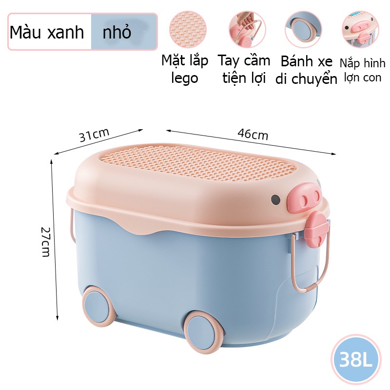 Thùng đựng đồ chơi cho bé hình lợn con xinh xắn bánh xe di chuyển, nắp thùng xếp được đồ chơi có thể đựng quần áo