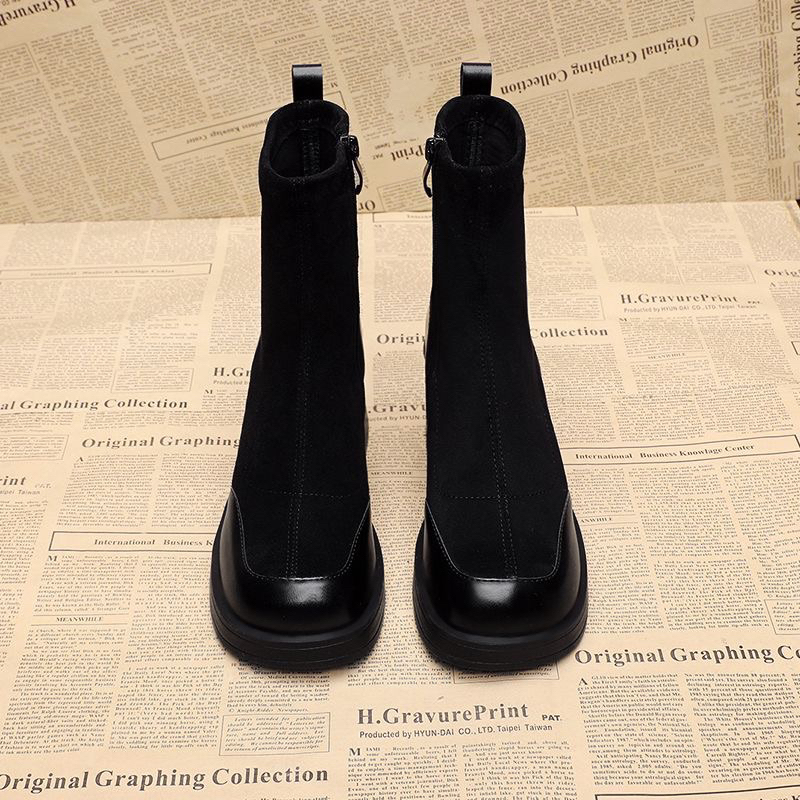 【Sẵn 36】Boot Da Lộn Cao Gót ,Kiểu Mũi Tròn Thoải Mái ,Hàng Xịn Loại 1