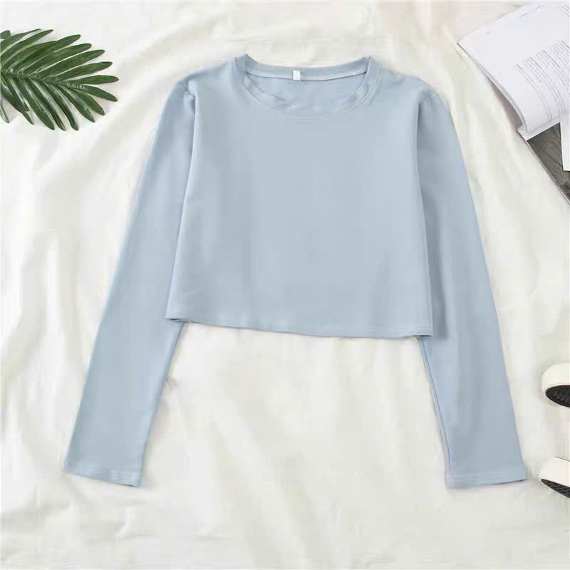 ÁO THUN CROPTOP TAY DÀI TRƠN FORM RỘNG CHẤT COTTON DỄ PHỐI ĐỒ