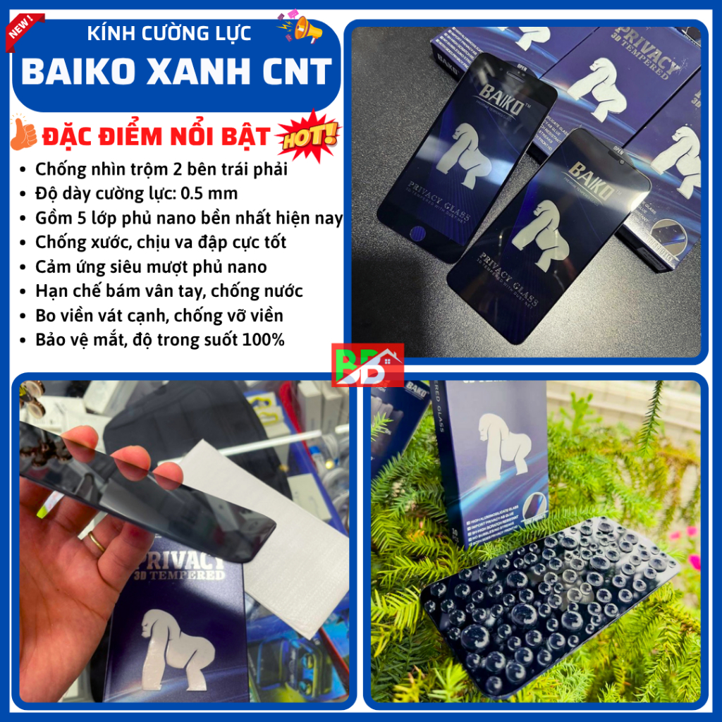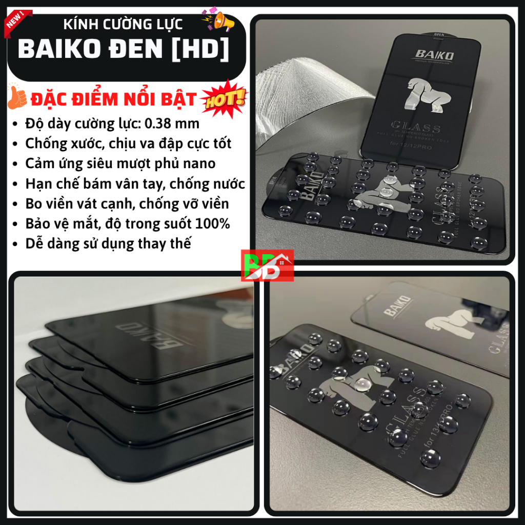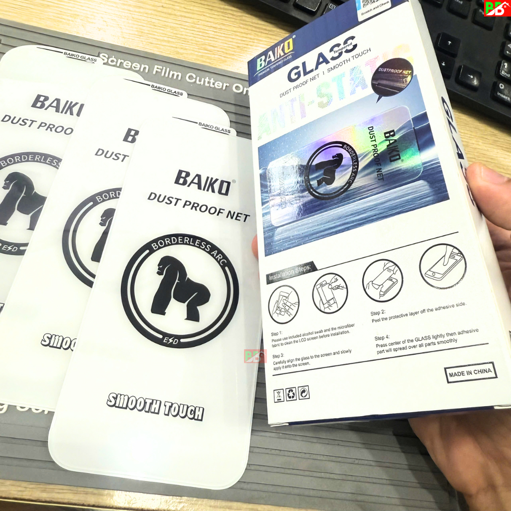 Kính cường lực Baiko iphone không viền Full màn hình cho ip 17 ProMax 17 Pro 16 ProMax 15 14 13 12 11 Pro Max X Xs Xr