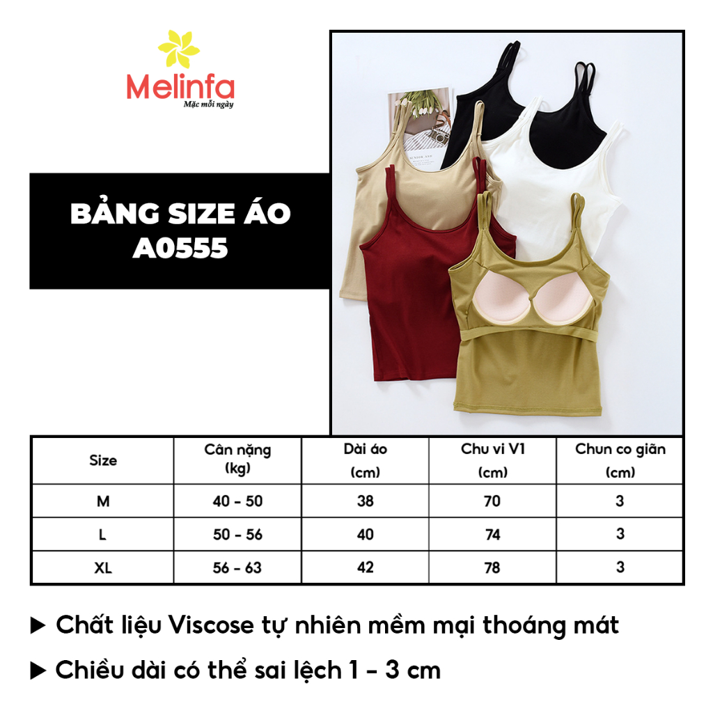 [XẢ KHO GIÁ SỐC] Áo hai dây nữ MELINFA cao cấp có đệm ngực chất vải Viscose tự nhiên mềm mại thoáng mát mã VAA0555